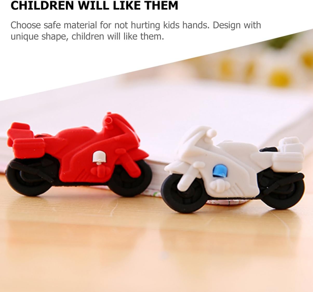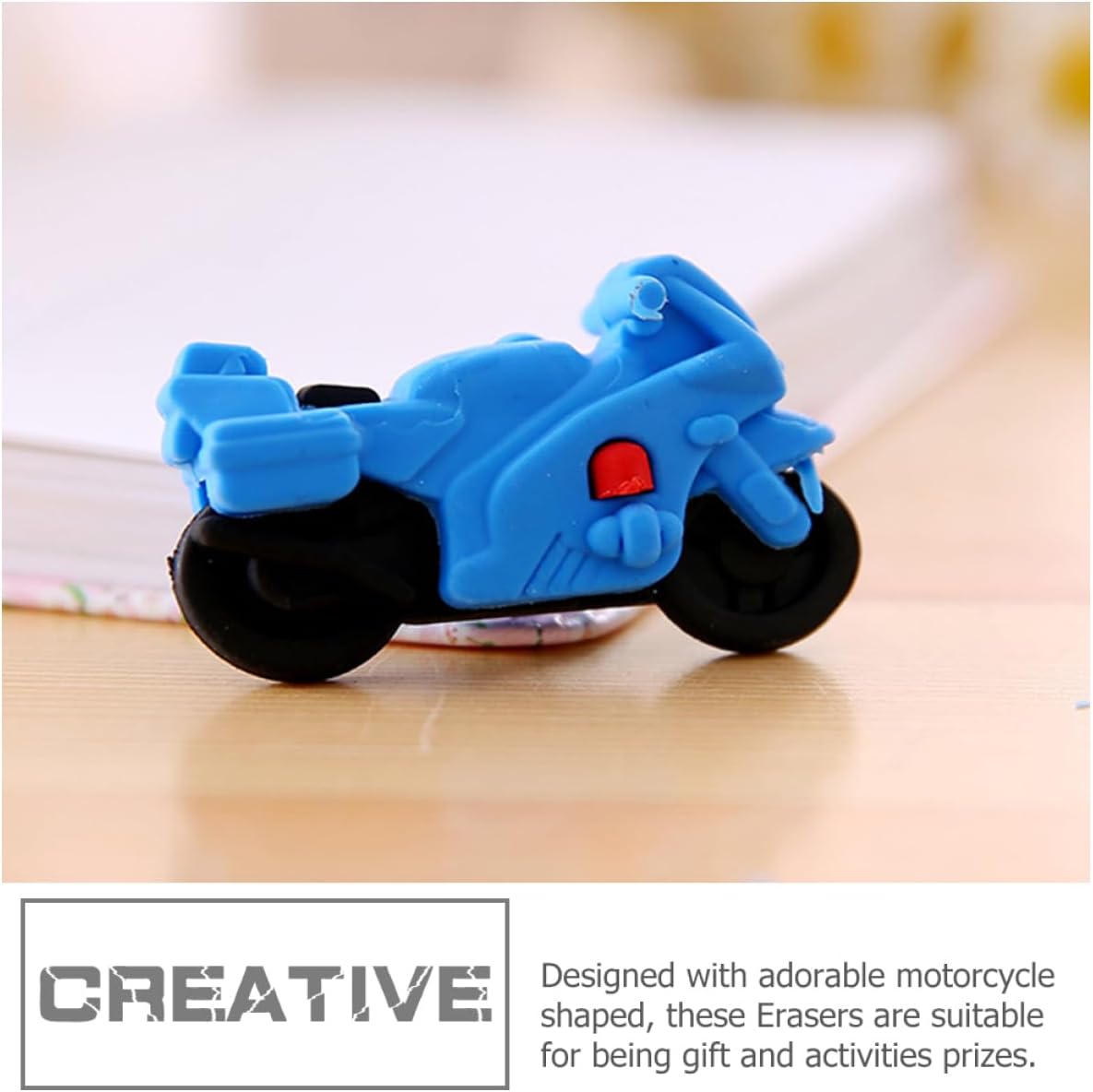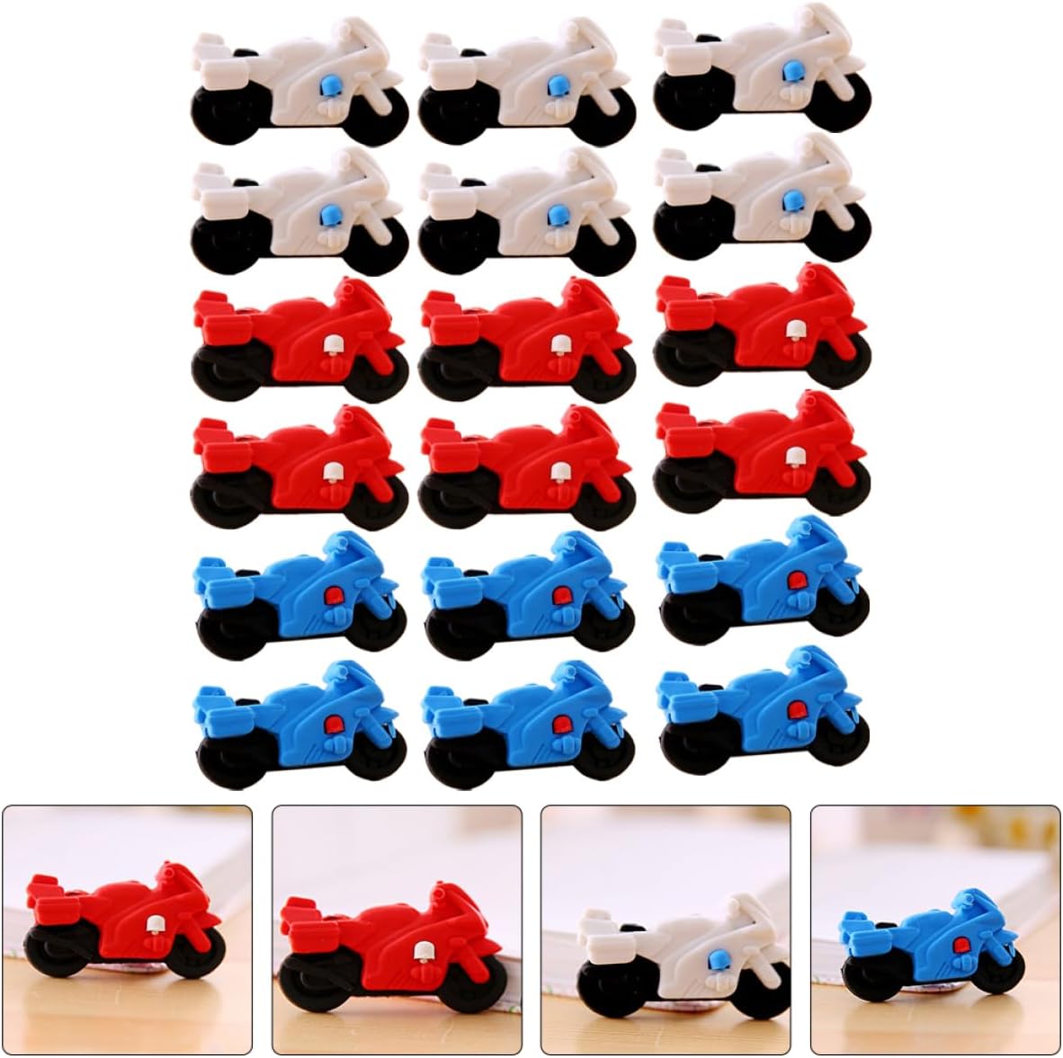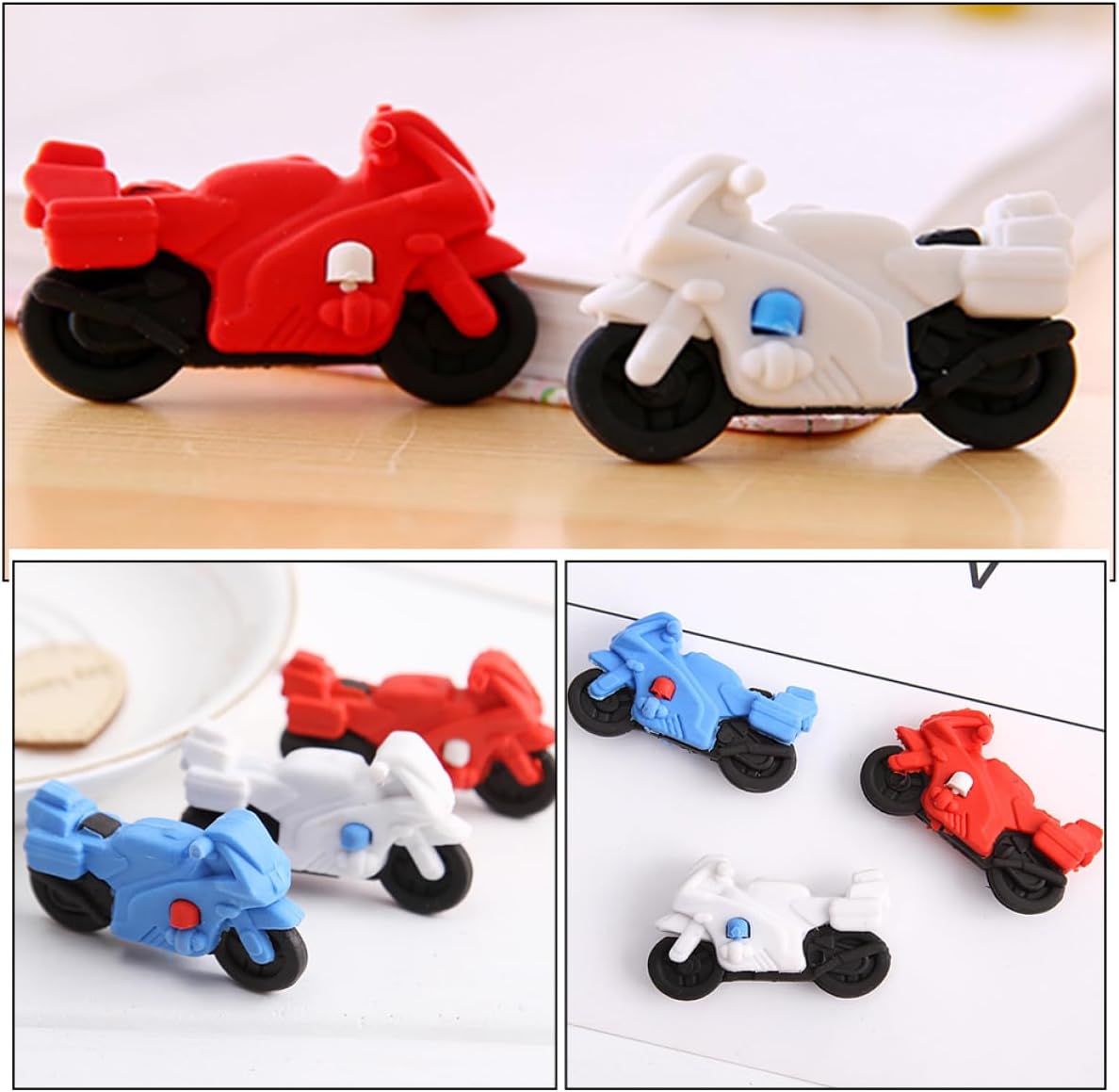 Mini gomme da cancellare per bambini: l'adorabile e innovativo design a forma di motocicletta, abbinato a colori vivaci, piacerà sicuramente ai bambini. Mini gomme da cancellare per cartoni animati: la gomma da matita a forma di motocicletta dei cartoni animati con un design creativo e interessante lo rende un ottimo regalo per gli studenti. Mini gomme da cancellare per bambini: scegli materiale sicuro per non ferire le dei bambini. design con forma unica, piaceranno ai bambini. Regali per gli studenti: è una gomma da matita molto utile, adatta a case, scuole, asili nido, uffici e altri luoghi. Puzzle 3d: la gomma ha funzioni pratiche e può rimuovere bene la grafia sbagliata scritta con la matita sul libro.