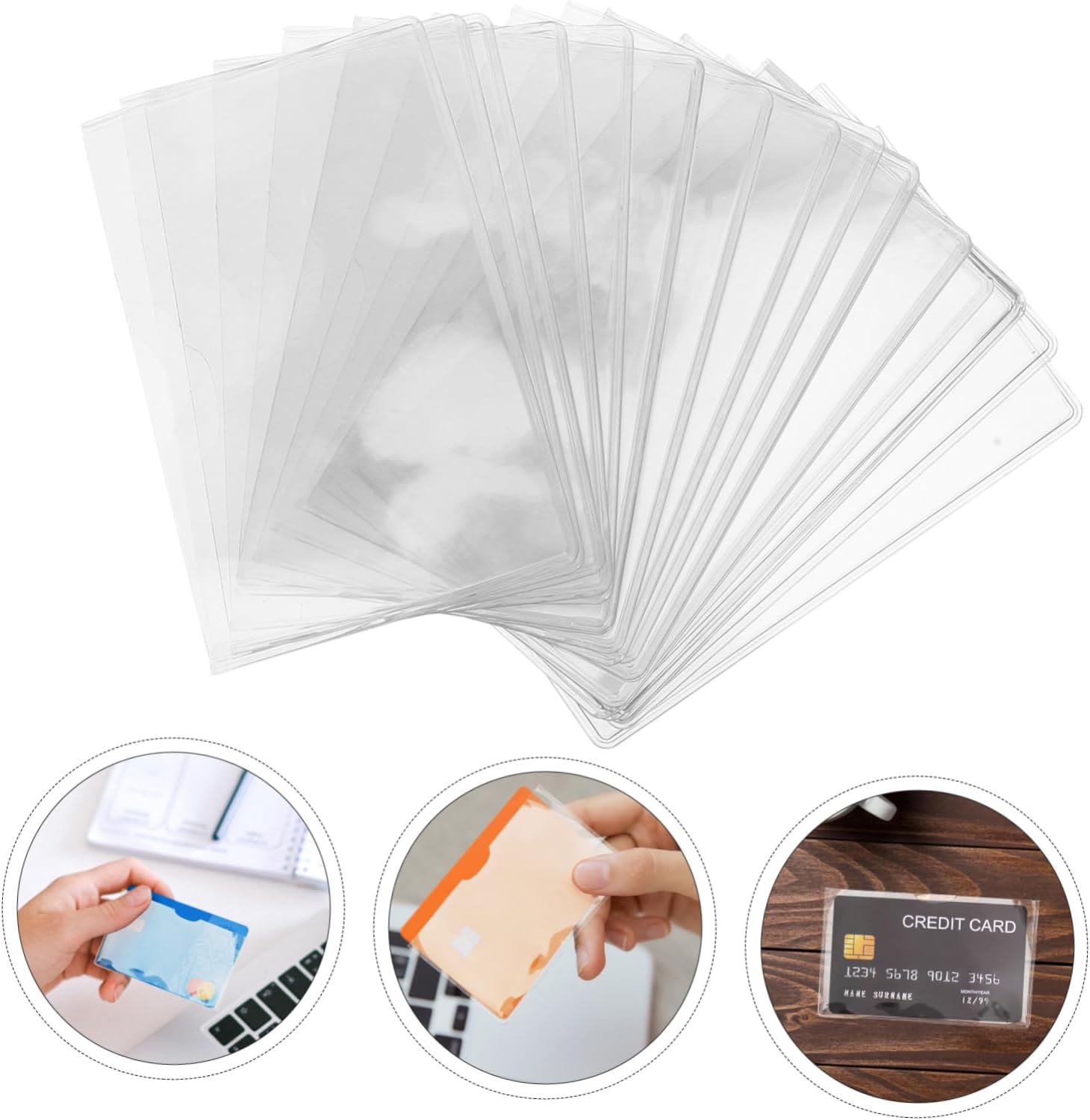 Protezione completa: le nostre custodie per carte di credito proteggono le tue carte da usura, strappi e sporco, mantenendole sempre sicuro e pulite, coperture per carte di debito, copertura adesiva per carte di debito Multifunzionale: ideale per proteggere tessere di previdenza sociale, tessere mediche, carte di credito, carte di guida, carte d'identità e biglietti da visita, queste custodie offrono una protezione versatile, custodia porta biglietti da visita, custodie per carte sportive Utilizzo versatile: per proteggere tessere di previdenza sociale, tessere mediche, carte di credito, carte di guida, carte d'identità e biglietti da visita, queste custodie offrono una protezione versatile, porta biglietti da visita per auto, porta badge trasparente Costruzione in pvc: le nostre custodie per carte sono realizzate in pvc, offrendo un design più liscio e flessibile che resiste alle crepe per un uso duraturo, buste per carte sportive, protezione trasparente per carte Comodo accesso: le dimensioni interne delle nostre buste per carte di previdenza sociale facilitano l'inserimento e la rimozione delle carte, prevenendo scivolamenti accidentali e migliorando la comodità quotidiana, protezioni per carte, buste trasparenti per carte