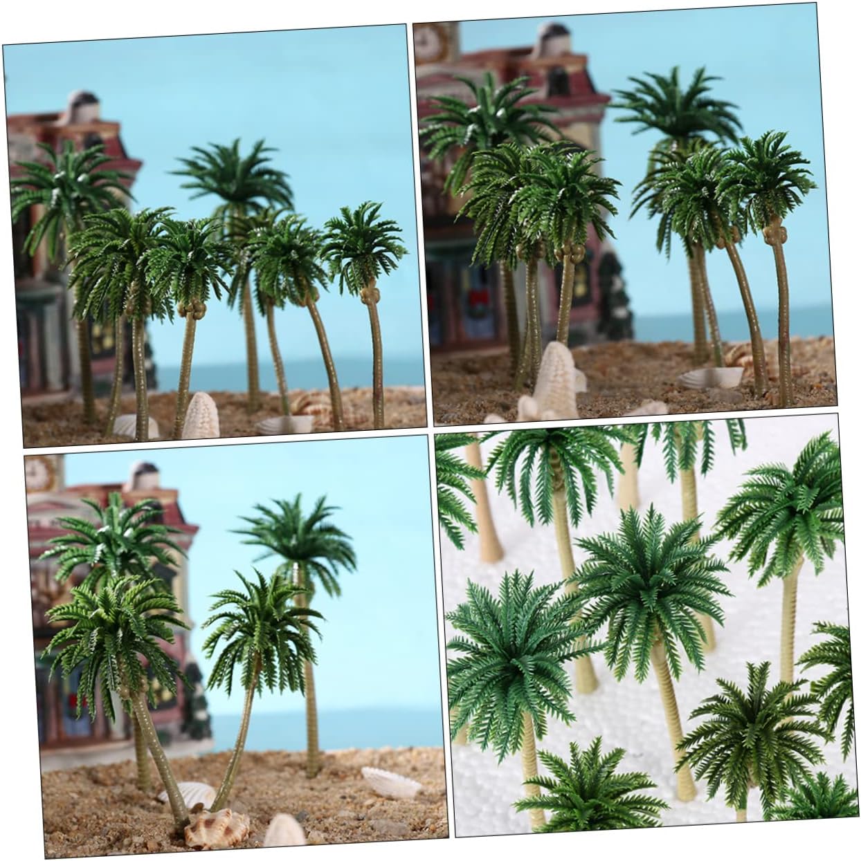 Micro alberi paesaggistici: realizzati con materiali plastici buoni e selezionati, sicuri e durevoli, con un aspetto gradevole. Mini alberi: realizzati principalmente in materiale plastico pregiato, l'ornamento per modellare l'albero è delicato e durevole, sicuro da usare. Statue di cocco: pratiche e decorative. adatto per la decorazione del modello di tavolo in sabbia e la decorazione di micro paesaggi, ecc. Alberi giocattolo: può essere applicato a lungo e il design delicato e i dettagli realistici possono rendere il tuo modello in miniatura più . Modelli di alberi da spiaggia: sono per la decorazione di interni ed esterni, con una forma unica e creativa.