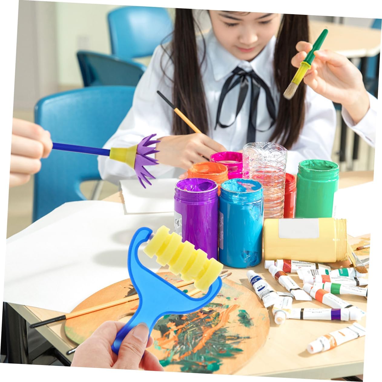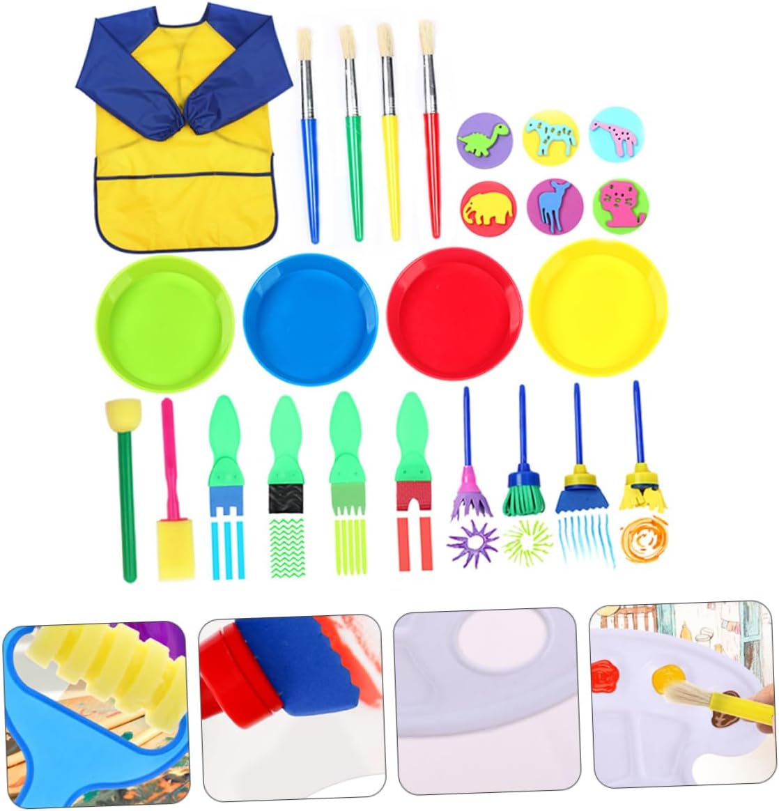 Vernice per : realizzata in plastica e spugna di qualità, kit di pittura robusto e igienico Fai da te, apprendimento artistico: questo kit di pittura è fantastico per i che iniziano a mostrare molto interesse per la pittura, strumento di disegno per la scuola Grembiule per pittura: dimensioni portatili e facili da eseguire, comodo da riporre, risparmia spazio quando esci, pennello per pittura in spugna Tavolozze di colori: anche i genitori possono godersi il tempo, mantenere buoni rapporti con i propri figli, vassoio per pigmenti Materiale artistico per : ampiamente utilizzato per i in età prescolare, scuola , principianti di pittura, studenti d'arte o artisti ecc., pennello da disegno per graffiti fai da te