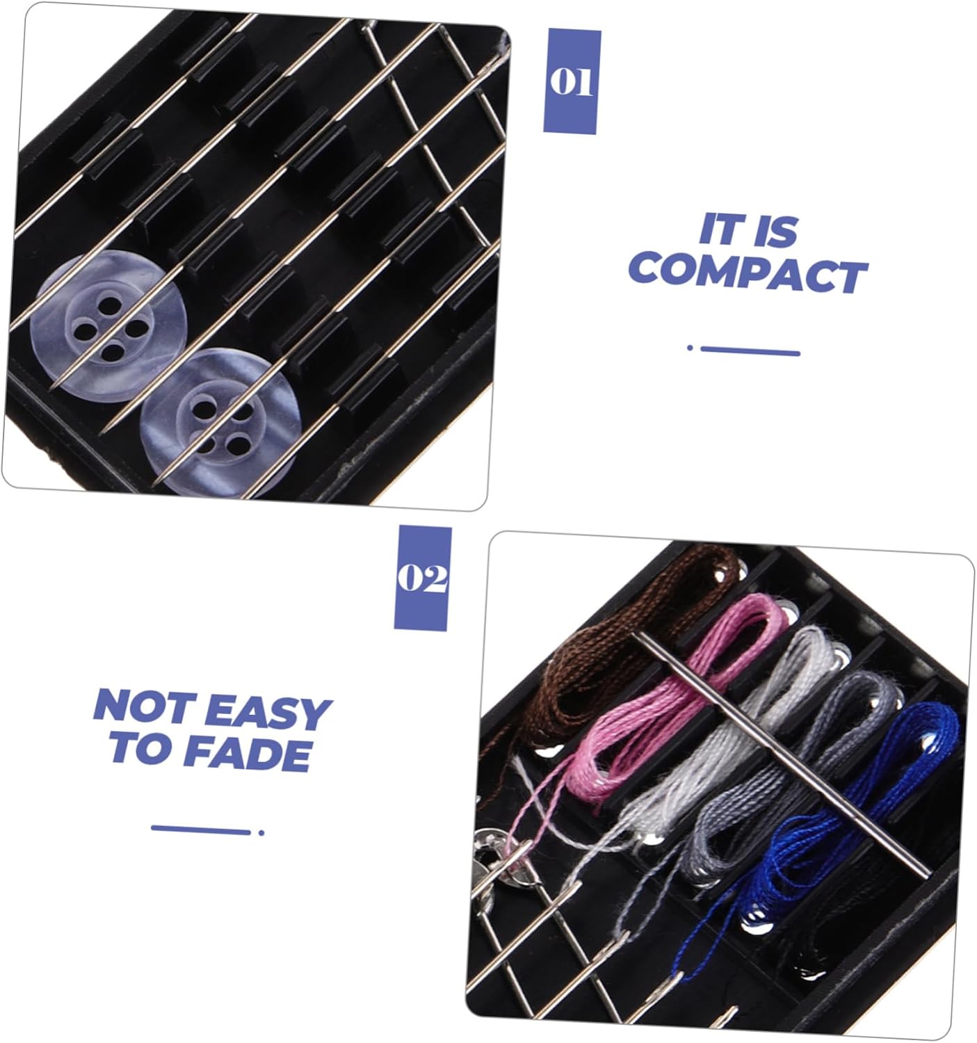 Forniture per cucire: il kit da cucito contiene quasi la maggior parte degli accessori di cui potresti aver bisogno per cucire e riparare, accessori per forniture per cucire Forniture per cucire fai da te: design ragionevole e conveniente, accessori ben fissi, oggetti incorporati non facili da cadere, kit di strumenti per cucire Kit da cucito multifunzionale: sarà un ottimo accessorio per gli strumenti da cucito e potrà essere utilizzato nella vita quotidiana, strumenti portatili per il cucito Kit da cucito da viaggio: è compatto, il kit da cucito è molto leggero e facile da trasportare dove vuoi andare, kit da cucito per la casa Macchina da cucire: questo pratico kit da cucito è sempre disponibile, facile da usare per riparazioni rapide di emergenza o cucito quotidiano, kit filo per cucire portatile