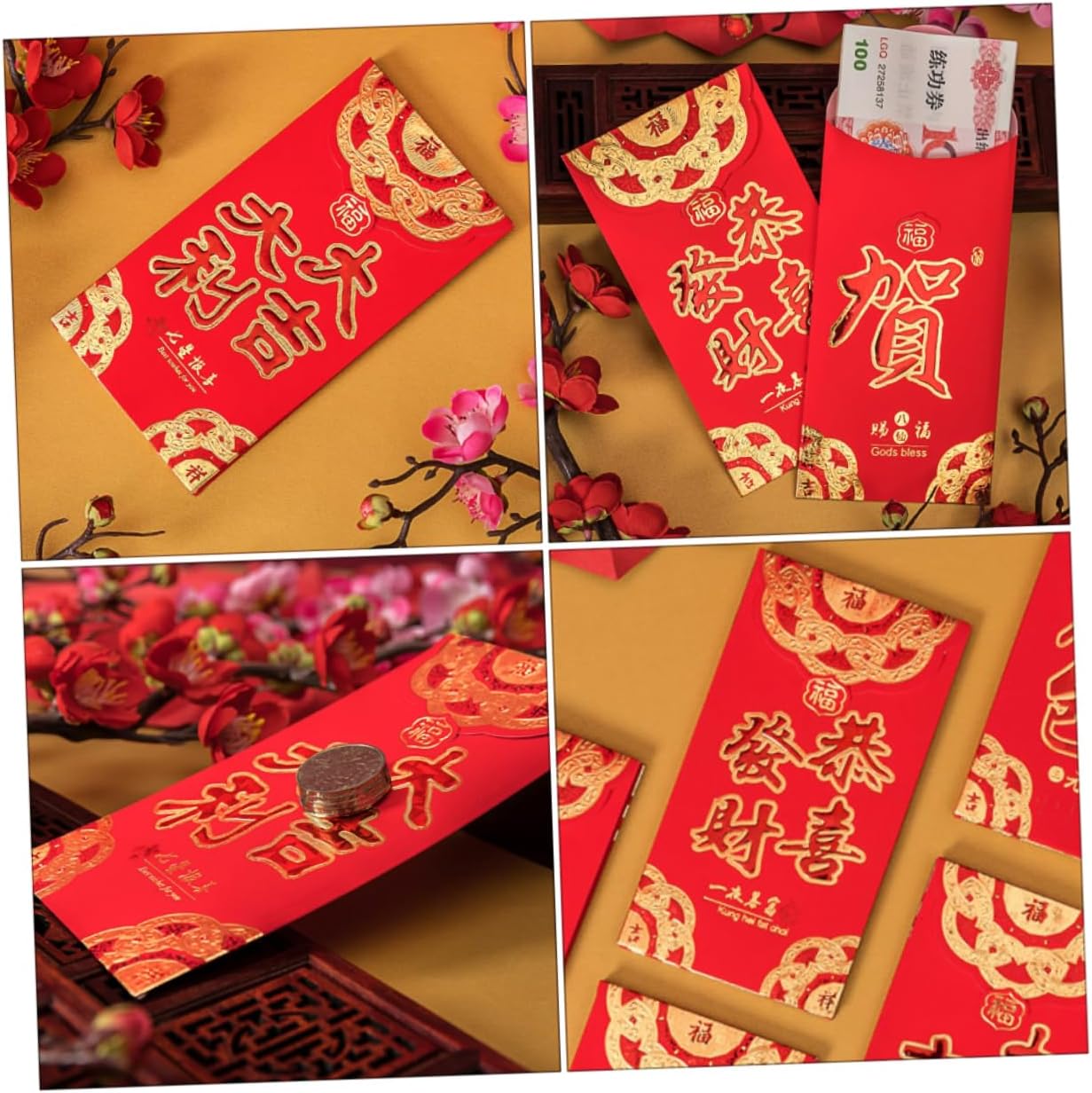 Busta rossa per : realizzata in cartone rosso speciale spesso, spesso e confortevole al tatto, pacchetto Busta rossa per il anno: inviala ai tuoi , saranno felici di ricevere la tua benedizione, busta rossa per il festival Busta rossa: realizzata in materiale di alta qualità e non facilmente danneggiabile, hongbao cinese Pacchetto di soldi della fortuna: pregevole fattura, non facile da indossare, molto pratico da usare, pacchetto rosso per Pacchetto rosso per la festa cinese: diverse lettere di benedizione e modelli per soddisfare le tue diverse esigenze, busta