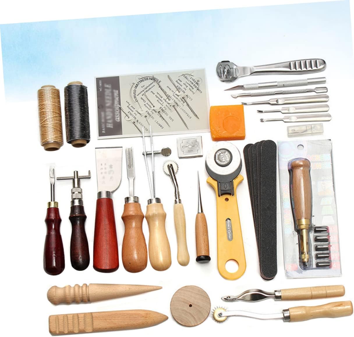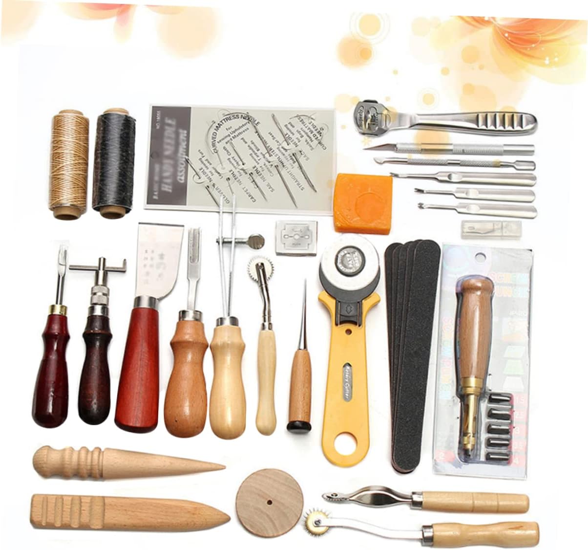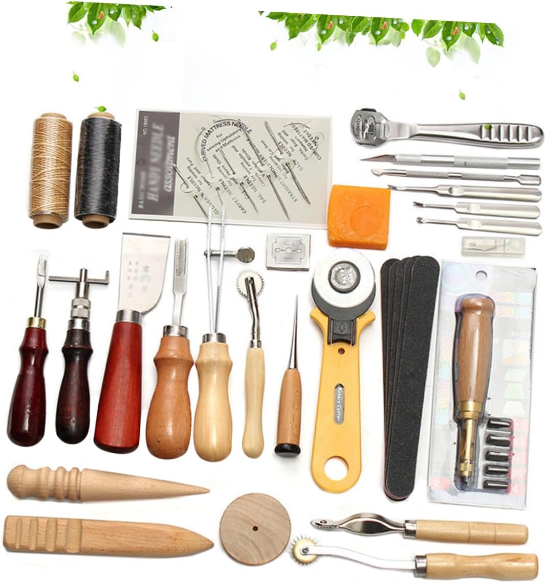 Kit da cucito a mano: la scelta perfetta per piccoli regali a genitori, familiari, amici, soprattutto per gli amanti del cucito a mano fai da te. Kit in pelle: adatto per uso professionale e domestico. Un set di strumenti professionali in pelle, realizzati in materiale di alta qualità, durevoli per un uso a lungo termine. Set di strumenti in pelle: lo strumento in pelle da 37 pezzi soddisferà le tue esigenze di base. Strumenti per cucire in pelle: leggeri e portatili ti danno una sensazione confortevole al tatto.