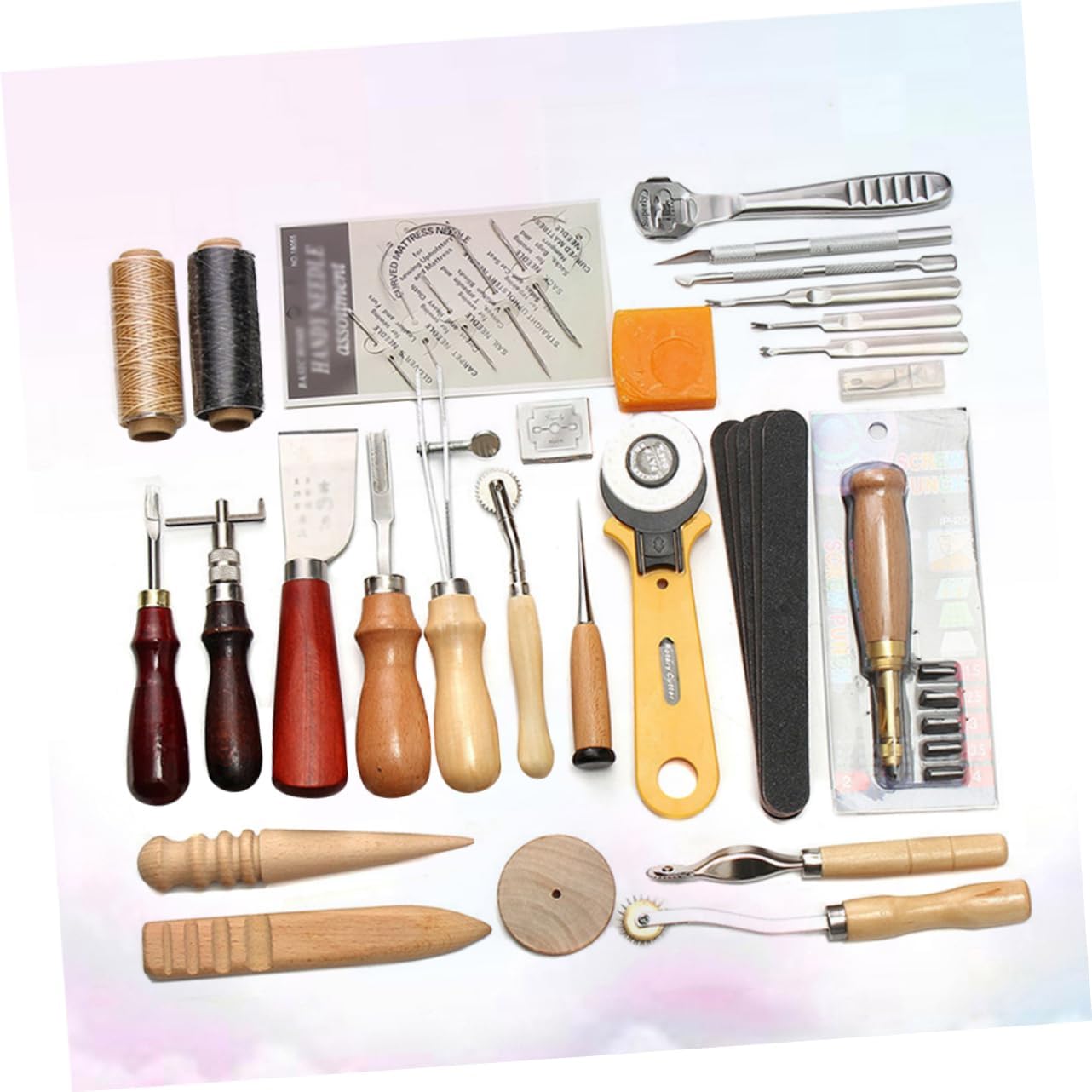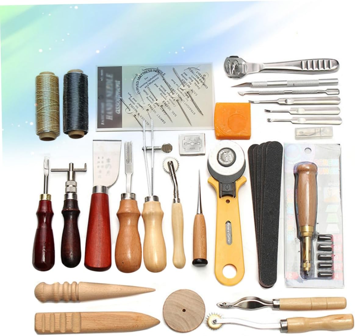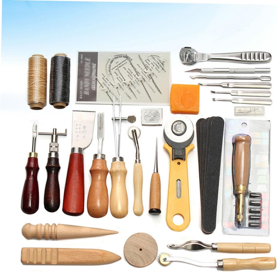 Kit da cucito a mano: la scelta perfetta per piccoli regali a genitori, familiari, amici, soprattutto per gli amanti del cucito a mano fai da te. Kit in pelle: adatto per uso professionale e domestico. Un set di strumenti professionali in pelle, realizzati in materiale di alta qualità, durevoli per un uso a lungo termine. Set di strumenti in pelle: lo strumento in pelle da 37 pezzi soddisferà le tue esigenze di base. Strumenti per cucire in pelle: leggeri e portatili ti danno una sensazione confortevole al tatto.