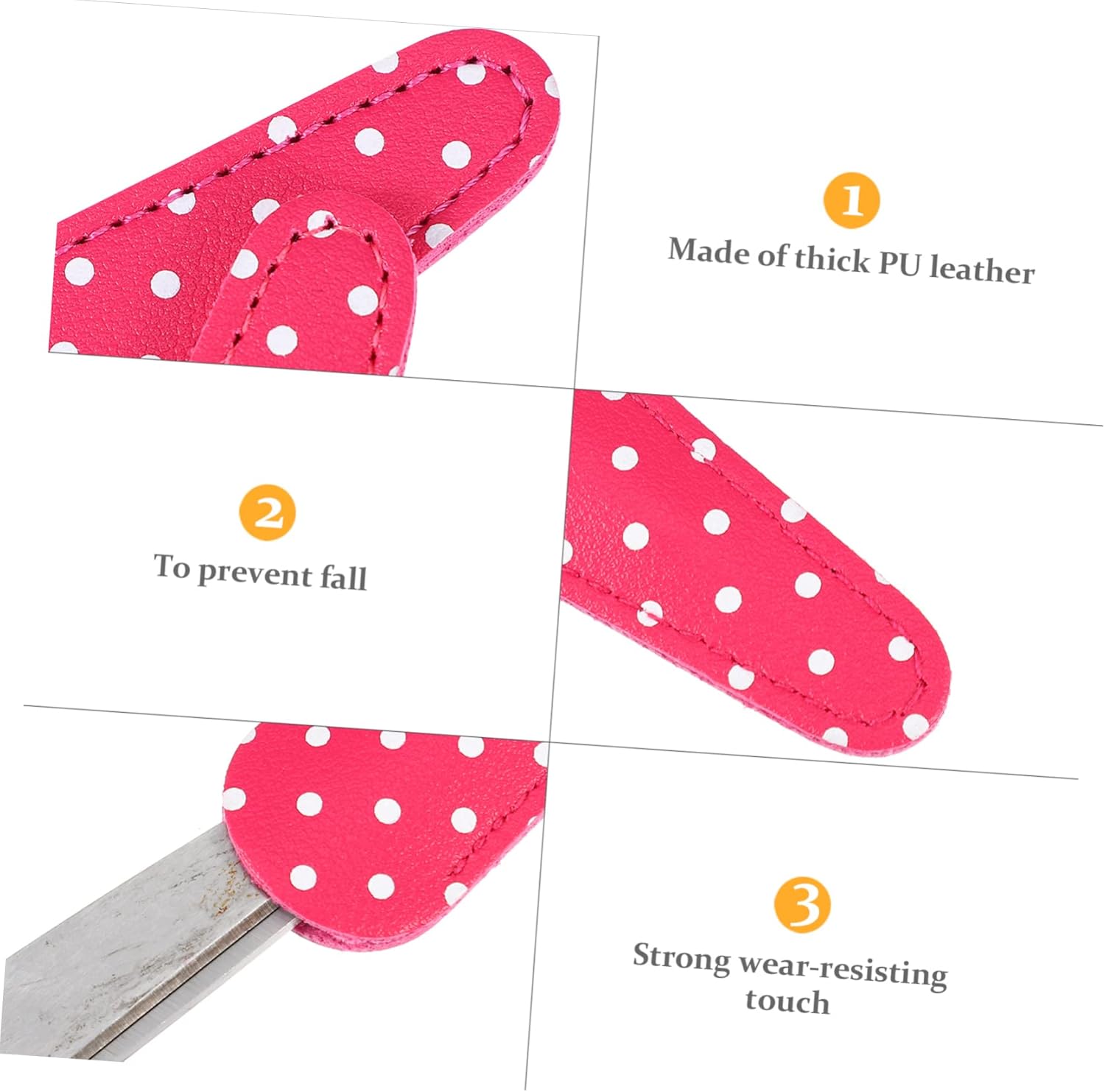 Protezione per forbici: può proteggere le forbici o gli strumenti di bellezza quando non sono in uso. Fodero in pelle a forbice: design adorabile e retrò e stampato con piccoli punti come decorazione adorabile, sembra delicato e adorabile. Fodero per forbici da cucito: evita che tu, i tuoi bambini e i tuoi clienti vi facciate male con le forbici. Protezioni per la punta delle forbici: molto leggere, facili da riporre e non occupano troppo spazio. Rivestimento in pelle a forbice: è un buon compagno nella tua vita quotidiana.
