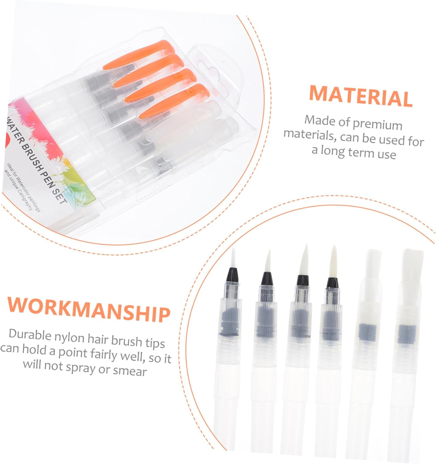 Pennelli per acqua: pennarelli per acquarelli adatti per la pittura ad acquerello, esercizi di scrittura, ecc. Pennelli per acquerello vuoti: realizzati in materiale plastico per un uso duraturo e duraturo. Matita con pennello ad acqua: semplice ma pratica, leggera per un facile e comodo da trasportare. penna a pennello ad acqua Pennello per pittura a mano: non ci sono penne ad acquerello disordinate per farti sentire a tuo agio quando dipingi. non c'è bisogno di occuparsi di ciotole d'acqua disordinate e di acqua traboccante Pennelli per studenti: i pennelli saranno facili da pulire dopo l'uso. questo set di pennarelli per acqua non contiene acqua. puoi riempire da solo per creare l'effetto pittura ad acquerello che desideri.
