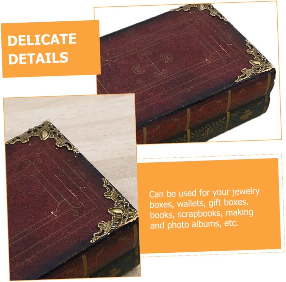 Attrezzatura per fotografico: installala sul tuo album fotografico o libro, il tuo oggetto sarà ben protetto e troverai un look e unico. Protezione per gli angoli dell'album: pregevole fattura e aspetto creativo ne garantiscono popolarità e praticità. Angolo della copertina del libro: il bell'aspetto può mostrare il tuo gusto unico ed elegante. Protezioni angolari per cartelle menu: pratiche da usare. proteggere il tuo scrapbooking, taccuino, album da danni, ecc. Copertura angolare per notebook: la protezione angolare presenta il vantaggio di elevata robustezza, durezza e resistenza all'usura.