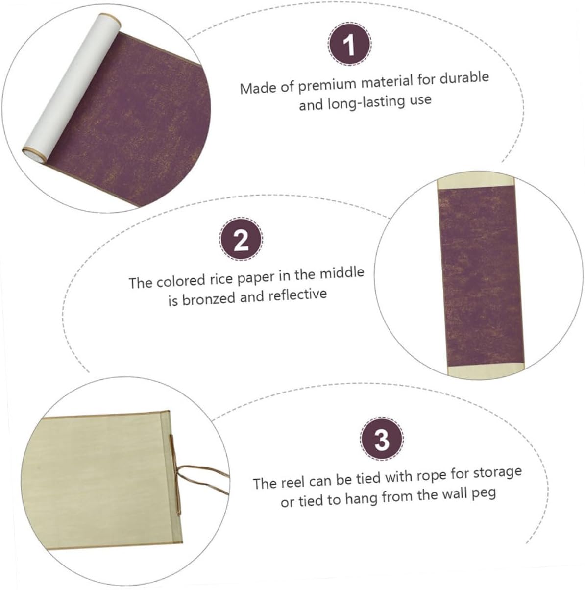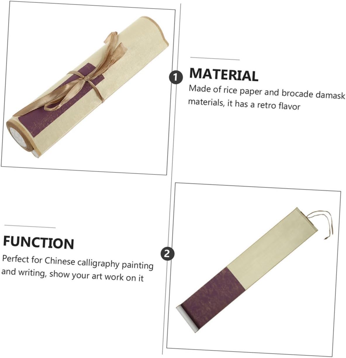 Rotolo sospeso: è facile opere d'arte vivide, può essere appeso in casa, soggiorno, camera da letto, ecc., carta per calligrafia domestica Accessorio per calligrafia: realizzato in materiale, questo rotolo di carta di riso è durevole per un uso prolungato, forniture per calligrafia cinese Rotolo per scrivere: buona fattura, molto adatto per l'uso dell'inchiostro, carta xuan per calligrafia cinese che non provoca vertigini Carta per da disegno: con un buon assorbimento d'acqua, ottima per kanji, calligrafia a pennello, pittura con inchiostro sumi, pittura ad acquerello, ecc., pergamena vuota Carta per calligrafia cinese: può essere legata con una corda per riporla o legata per appenderla al muro, carta per esercitarsi nella calligrafia cinese