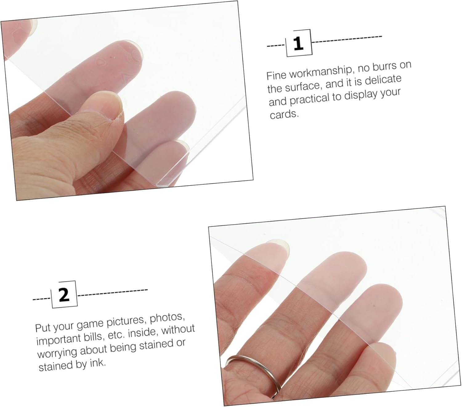 Copertine per carte: forniscono una protezione sicura per targhetta con , badge, carte d'identità, biglietti da visita, carte di credito, ecc., protezioni trasparenti per carte Copertura per carte: questa copertura protettiva per carte è adatta per personale, lavoratori, studenti, volontari, infermieri, medici, ecc., coperture per display delle carte Buste per carte portatili: pregevole fattura, sbavatura sulla superficie, ed è delicato e pratico per esporre le tue carte, copertine per carte antigraffio Buste protettive per carte: il titolare della carta garantisce la sicurezza della tua carta durante la conservazione, l'esposizione e il trasporto, copertura delle carte Copertina per carte fotografiche: la custodia per carte può proteggere massimo le tue carte da graffi, ammaccature, acqua e grasso e mantenerle così com'è, buste protettive per carte