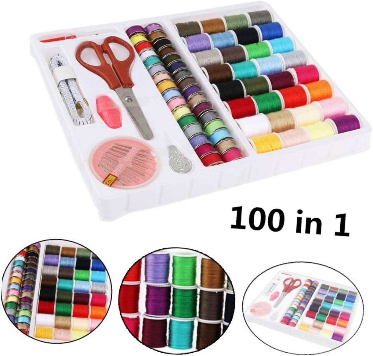Kit da cucito da viaggio: ideale per la casa e in viaggio, o per adolescenti e principianti che hanno bisogno di alcune cose di base per cucire, il mio primo kit da cucito Casuale, materiale plastica, metallo e filo di cotone, kit da cucito, realizzazione trapunta Incluso: 32 bobine di filo assortite, 32 bobine di metallo abbinate, 30 aghi in una scatola, un metro a nastro, una forbice, 2 ditali, un infila-ago e un taglia asole, kit da cucito per adulti, macchina da cucire per bambini Kit per trapunta: il kit da cucito 100 in 1 include tutti i tipi di accessori necessari per i tuoi progetti di cucito e artigianato, elementi essenziali per il cucito