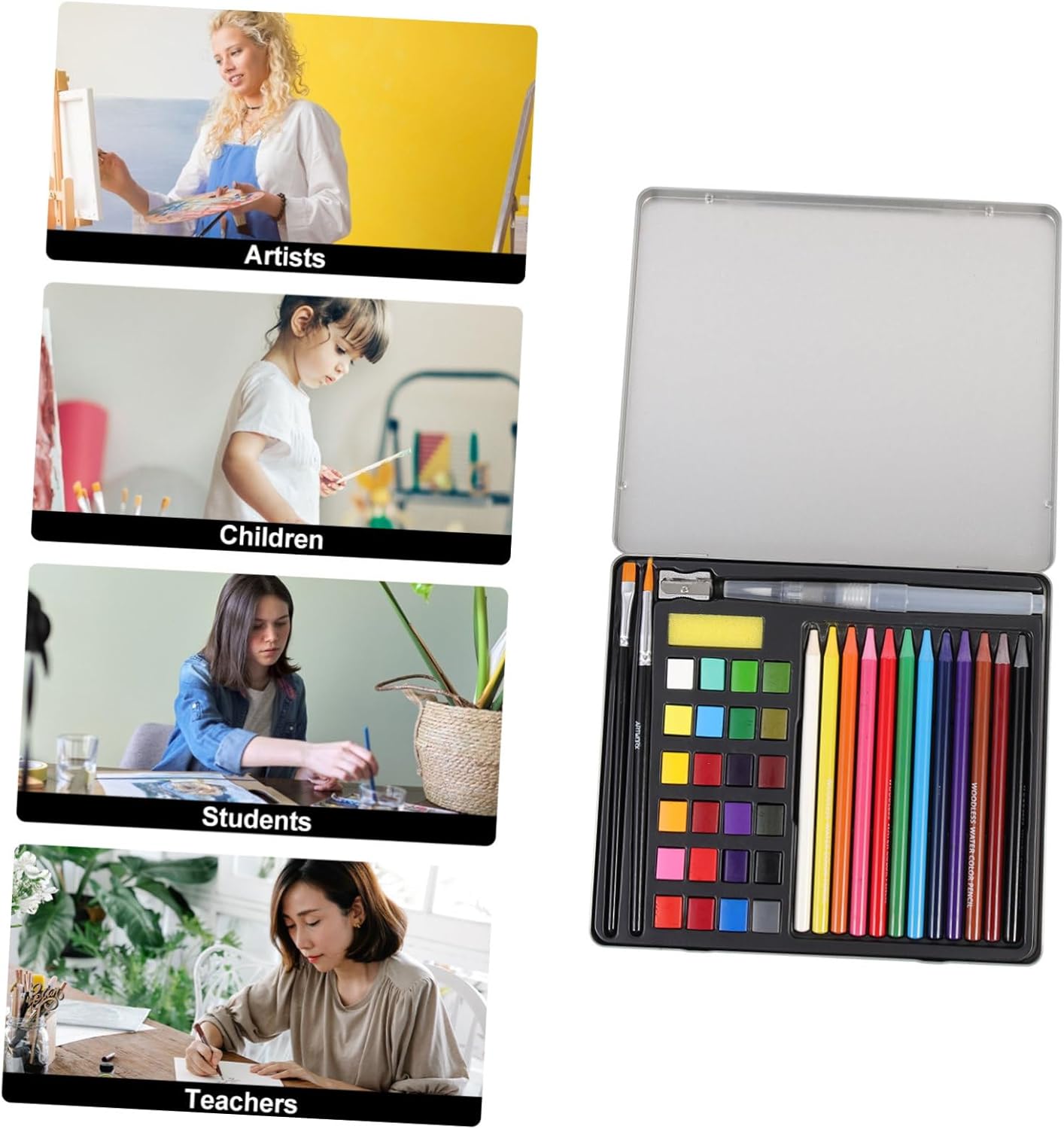 Kit da disegno per acquerello: è realizzato in materiale adatto ai , soddisferà perfettamente le esigenze di pittura o colorazione fai da te dei , pittura ad acquerello Kit acquerello professionale: colori acquerelli vibranti e accattivanti a tua disposizione, ideali per studenti, insegnanti, artisti, , arte, artigianato, ecc., kit di pittura per la casa Accessorio per dipingere: puoi creare i tuoi dipinti unici con i tuoi e goderti il divertimento della creazione senza alcuna preoccupazione, attingi alla fornitura Kit di pigmenti per pittura: studenti, amanti dell'acquerello, pittori professionisti dell'acquerello, interessati alla pittura, ecc., acquerelli Accessorio per disegnare: vieni con una scheda per mescolare i colori, che può aiutarti a dipingere bene e i tuoi colori preferiti, kit per acquerello multifunzione