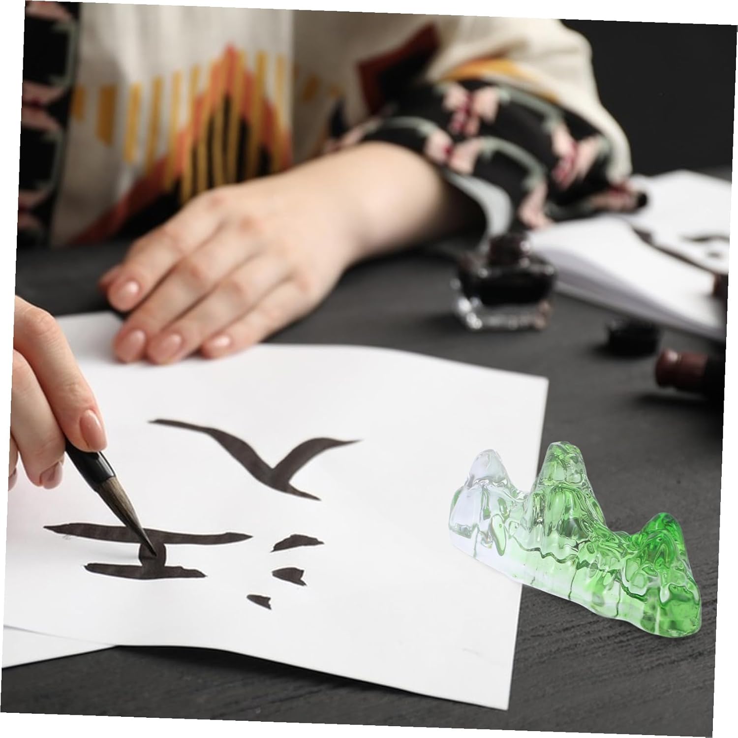 Miglioratore di stanza versatile: sia come strumento di calligrafia tradizionale che come fermacarte artistico moderno, questo accessorio si adatta ugualmente ad aule, studi o uffici commerciali, strumenti per laboratori di calligrafia, fermacarte in vetro Migliora la concentrazione artistica: usalo come supporto per calligrafia o portapenne cinese per stabilizzare i tuoi documenti, consentendo strumenti di disegno precisi e un processo creativo ininterrotto. Fermacarte per calligrafia cinese, portaspazzole per calligrafia Organizer da scrivania dal design paesaggistico di montagna: questo accattivante fermacarte dal design calligrafico cinese organizza il tuo spazio di lavoro e tiene pagine e pennelli saldamente in posizione, strumenti di scrittura cinese, supporto per esercitazioni per calligrafia Conservazione senza sforzo degli strumenti artistici: il design del portapenne e del supporto per pennelli consente un comodo accesso agli strumenti di scrittura e disegno evitando macchie indesiderate di inchiostro o vernice, portaspazzole per calligrafia, accessori per calligrafia e pittura Ispirazione cristallina: questo fermacarte per calligrafia in vetro cristallo offre una montagna realistica effetto gamma e ispira i tuoi sforzi di calligrafia e disegno con la sua bellezza naturale, pesi di vetro, fermacarte per calligrafia