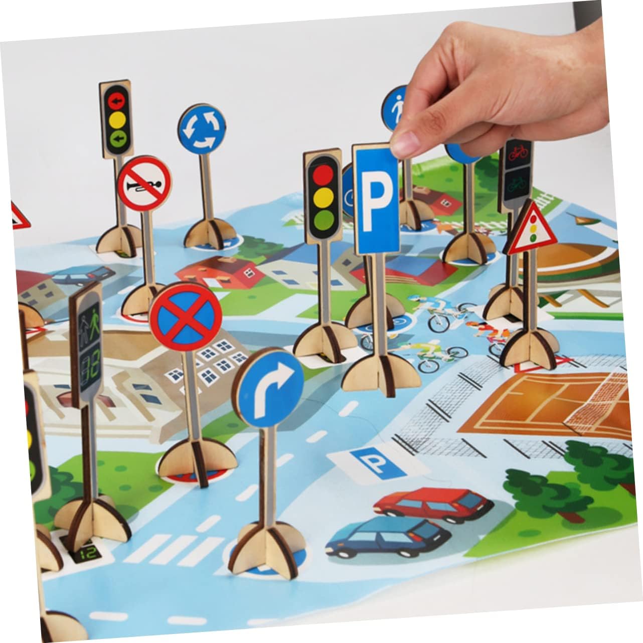 Realizzato in materiale in legno di alta classe e , liscio, sicuro e resistente. La scena del traffico veicoli fingi di gioco di gioco, incoraggia il gioco cooperativo e fantasioso con il partner. I realistici e le immagini segnali stradali rendono facile per i bambini ricordare tutti i segni. Segni assortiti per l' edilizia e la costruzione di scene stradali di simulazione e materiali forti per alzarsi in modo più stabile. Questo è un giocattoli educativi molto pratici per i bambini, che possono effettivamente aiutare i bambini a migliorare la loro consapevolezza della sicurezza.