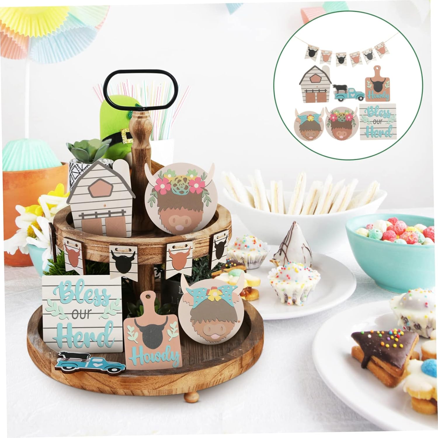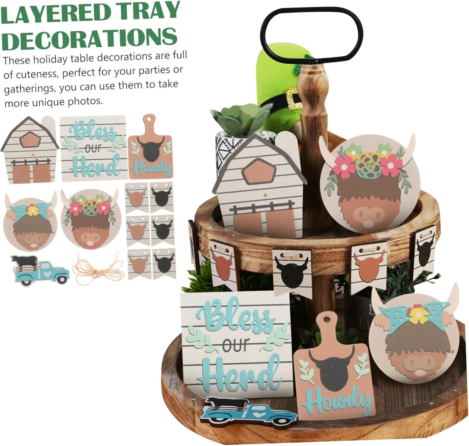 Decorazione del vassoio della fattoria: i centrotavola per feste progettati con il tema della mucca sono decorazioni accattivanti per la scrivania e possono anche essere una buona scelta per la famiglia o gli amici, cartello in legno Decorazioni per vassoi a più livelli: i cartelli in legno possono coordinarsi con la festa o le decorazioni della casa, possono aggiungere meglio un'atmosfera festosa, centrotavola per feste di compleanno Decorazioni rustiche per vassoi a più livelli: le decorazioni per insegne in legno su vassoi a più livelli sono adatte per diverse feste, decorazioni per la casa colonica e così via, donano tuo posto un look, decorazioni per vassoi a più livelli Centrotavola da tavolo: i cartelli da scrivania a tema mucca possono essere decorati con altri ornamenti da tavolo, per un migliore effetto decorativo, centrotavola a più livelli della fattoria Decorazioni per vassoi a più livelli in legno: oggetti di scena per decorazioni per feste a tema mucca, splendidamente realizzati e con buone trame, questi decori per vassoi a più livelli della fattoria possono aggiungere più atmosfera festosa, decorazioni per vassoi a più livelli della fattoria