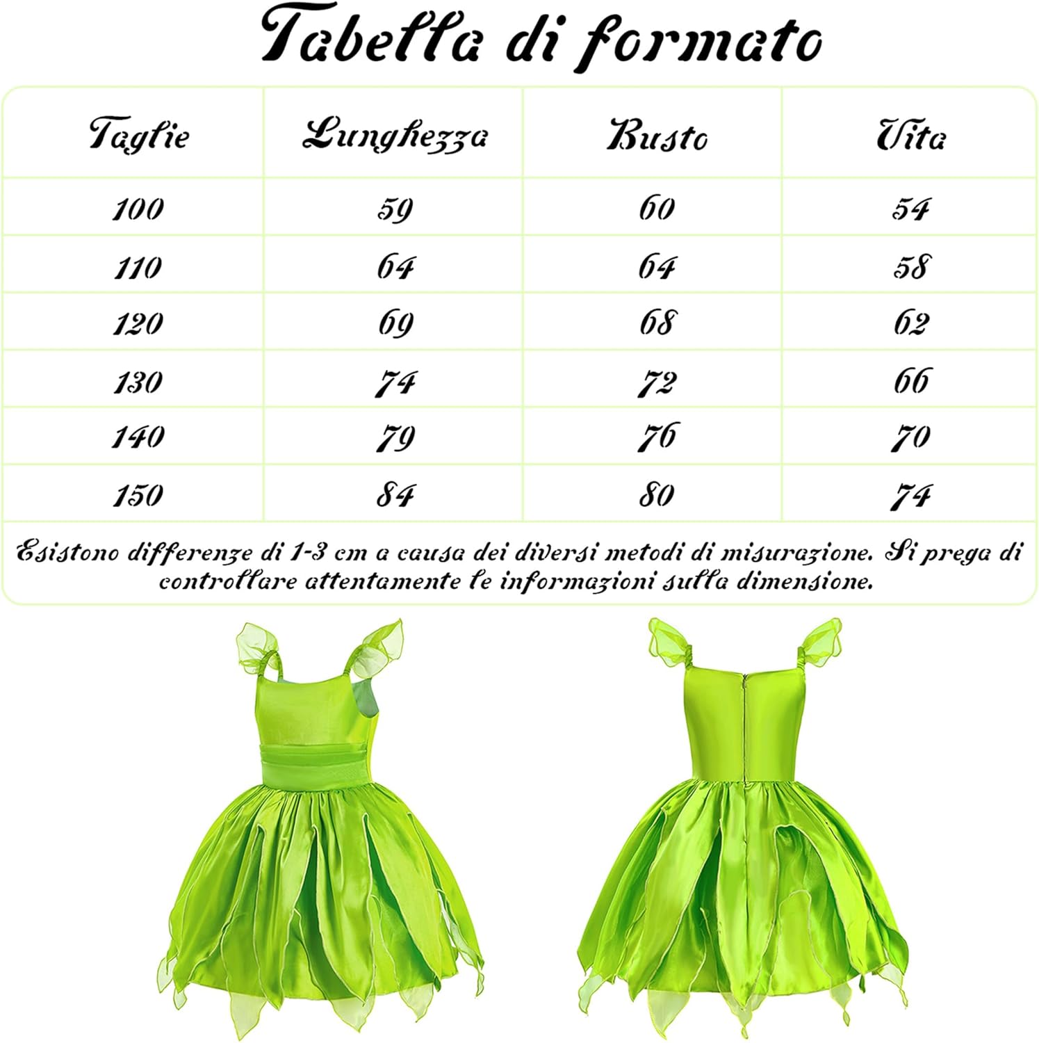 Nuovo davanti Costume Trilly per bambina Vestito Trilly per neonata Costume di Carnevale Trilli per ragazze Costume da Campanellino per bambine in finta seta Estate Feste a tema Carnevale Halloween Verde