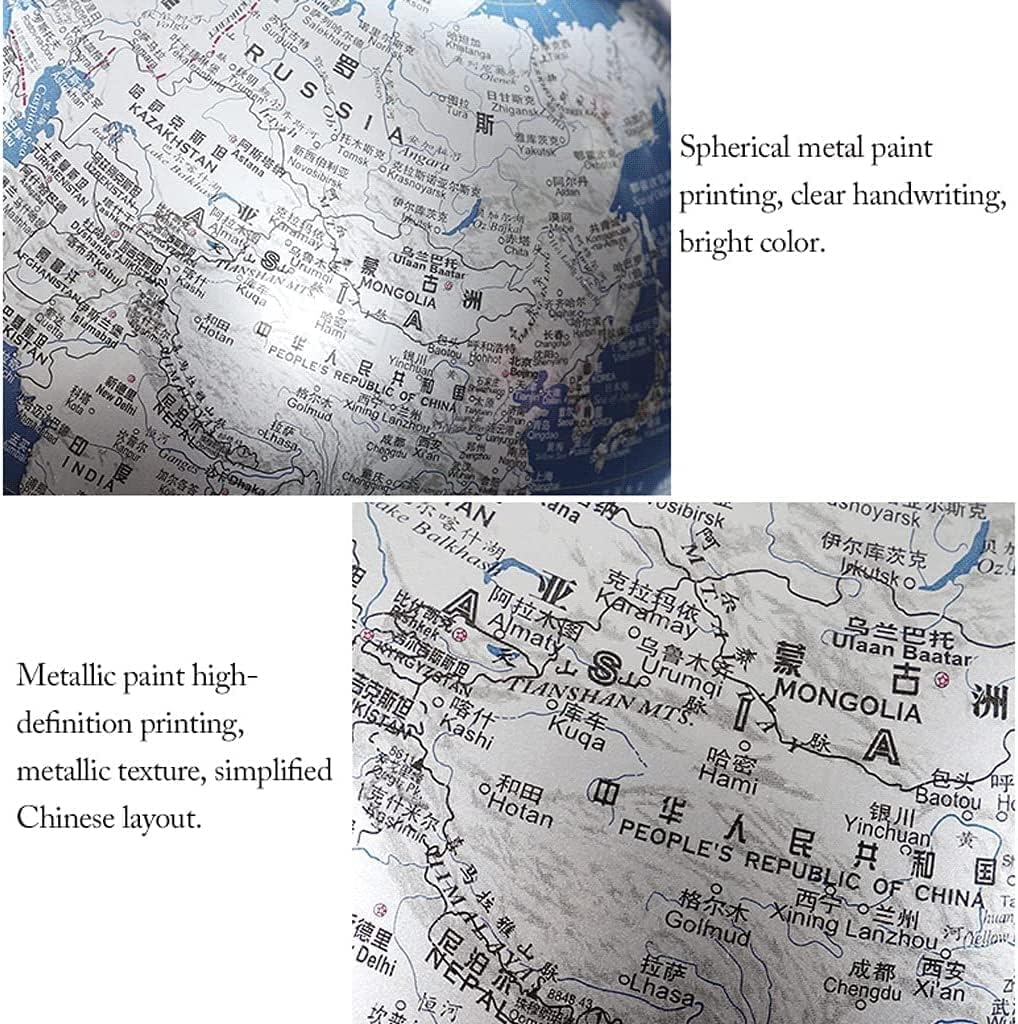 La stampa ad alta definizione riproduce il mappamondo educativo con chiari dettagli geografici della Terra. Informazioni sulla carta facili da leggere. Rotazione flessibile a 360°: stampa sferica con vernice metallica, base con staffa metallica, stabile e generosa, base cromata brillante elegante ed elegante, posizionamento più stabile. Bilingue in cinese e inglese: guarda la Terra in tutte le direzioni e impara la geografia in modo più completo. Bilingue in cinese e inglese, informazioni geografiche complete. Struttura in metallo: colori brillanti, grafica intuitiva, facile da ricordare, stampa chiara sulla sfera, sfera liscia e arrotondata, che ti consente di vedere ogni angolo del mondo in qualsiasi momento. Il globo didattico aiuta i tuoi bambini a esplorare i confini politici del mondo, i continenti oceanici e le città. Questo rende divertente l'apprendimento della geografia!