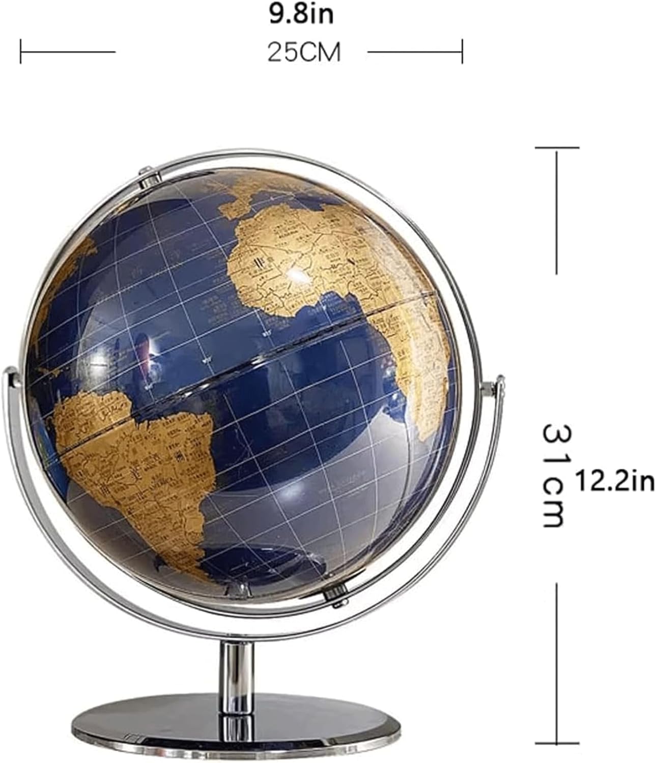 Nuovo Globo Globo con un diametro di 25 cm, mappamondo girevole a 720° con arco e base in metallo, mappamondo terrestre bilingue in cinese e inglese in dettaglio