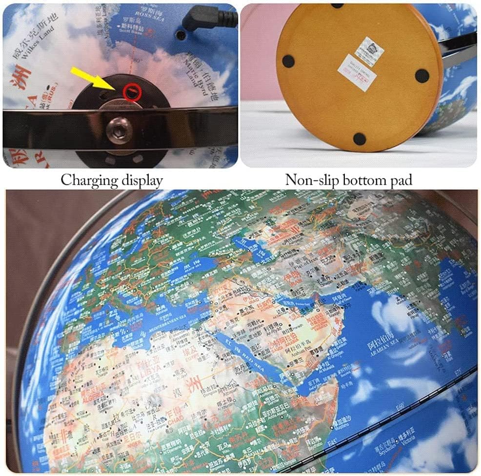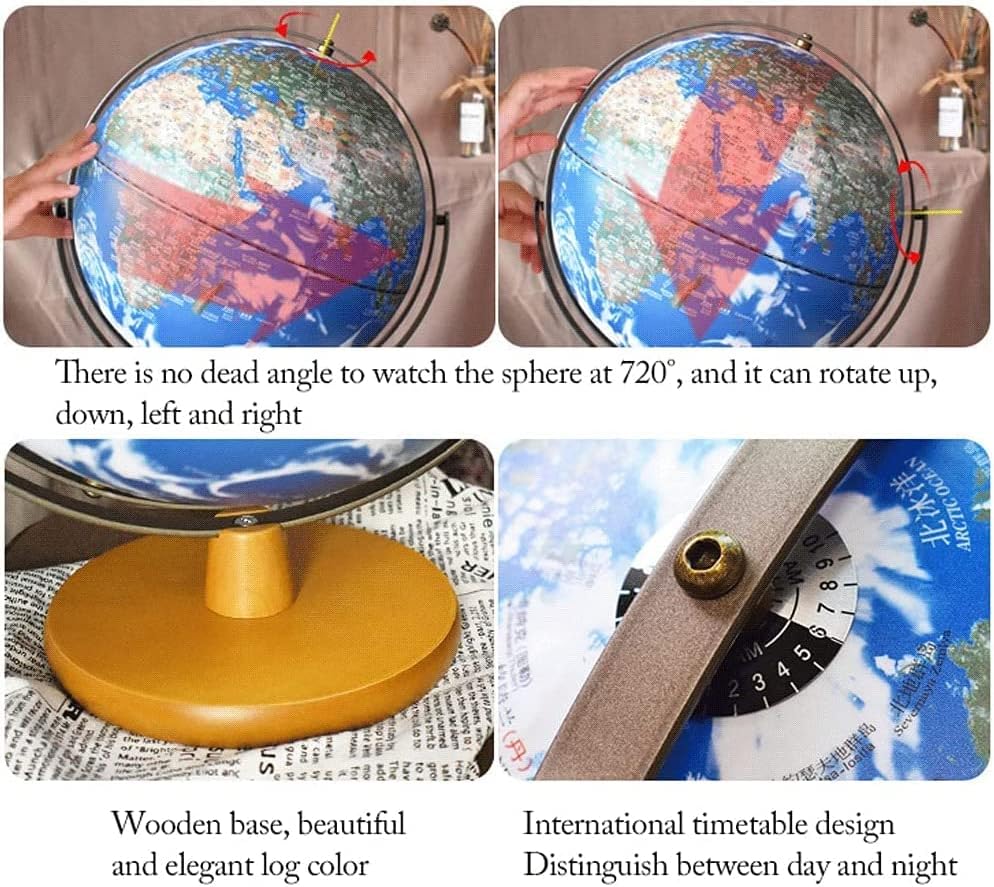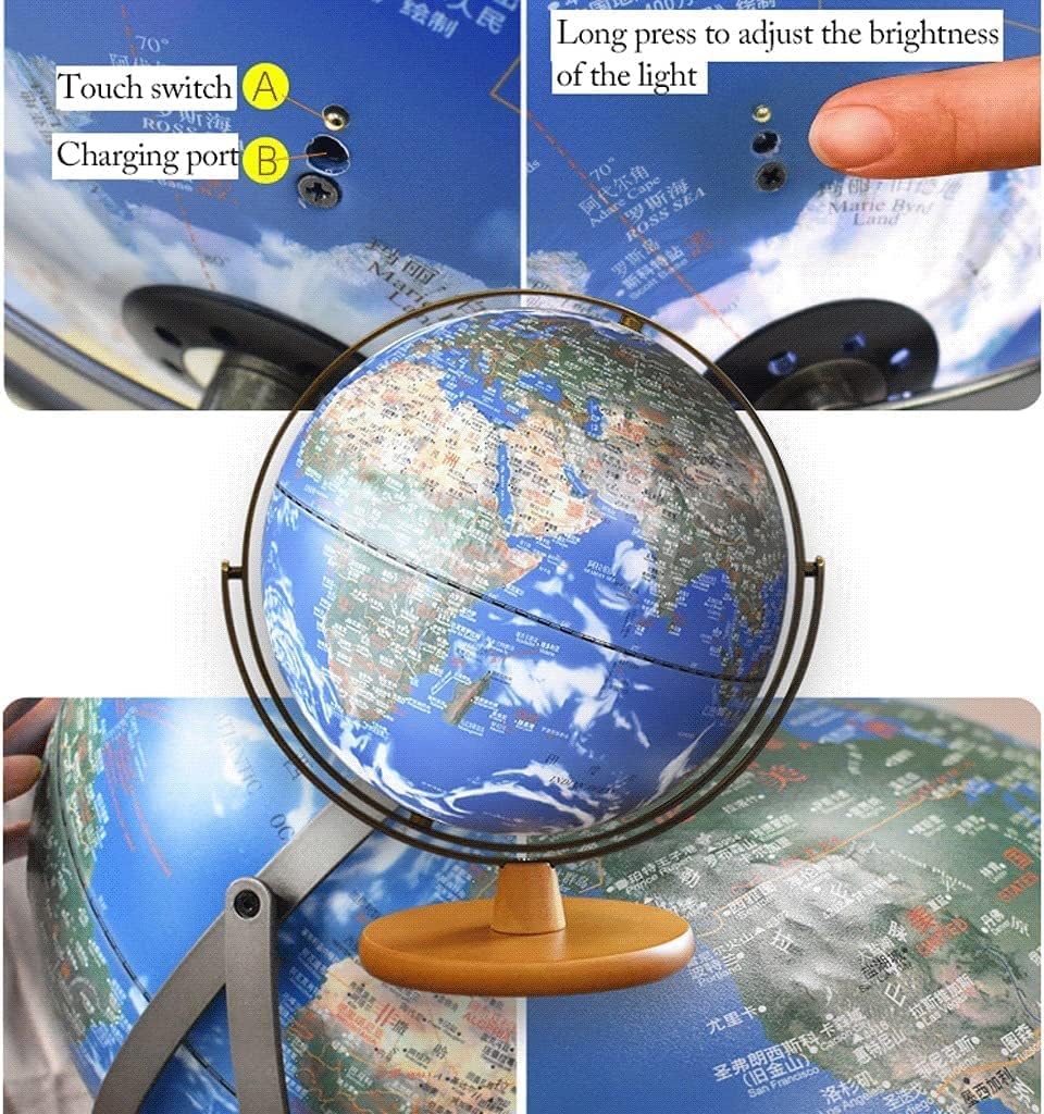 base in legno: il colore del legno è bello e generoso; il cuscinetto inferiore antiscivolo non è facile da scuotere; il metodo di ricarica non ha bisogno di essere collegato per accendersi e il tocco illumina il tuo pianeta PERFETTAMENTE PRATICO: con una base in legno e una struttura in metallo a 720°, il mappamondo da tavolo è perfetto per l'arredamento di casa e ufficio, aggiungendo un effetto educativo ed estetico alla camera da letto di qualsiasi bambino, sala giochi per famiglie o dormitorio per giovani adulti. Design 2 in 1: il globo terrestre luminoso è dotato di una luce LED controllata da un interruttore, quindi può essere trasformato in un bellissimo globo luminoso per studiare di notte (toccalo, illumina il tuo pianeta) REGALO PERFETTO: questo mappamondo geografico di ispirazione antica è il regalo perfetto per i viaggiatori appassionati e costituisce il fulcro dell'arredamento della tua casa o come strumento didattico.
