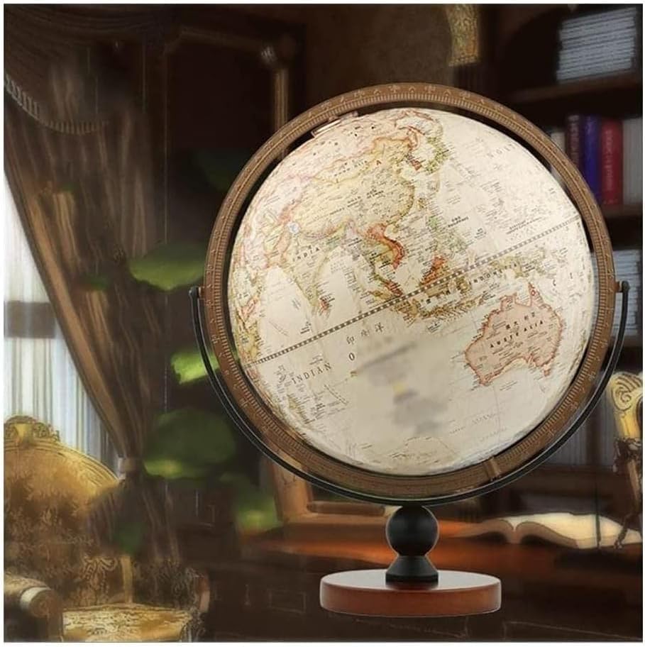 Nuovo mappamondo con diametro di 30 cm, mappamondo girevole a 720° con base in legno massiccio, mappamondo in stile europeo per scuola/casa/ufficio. Dettagliato