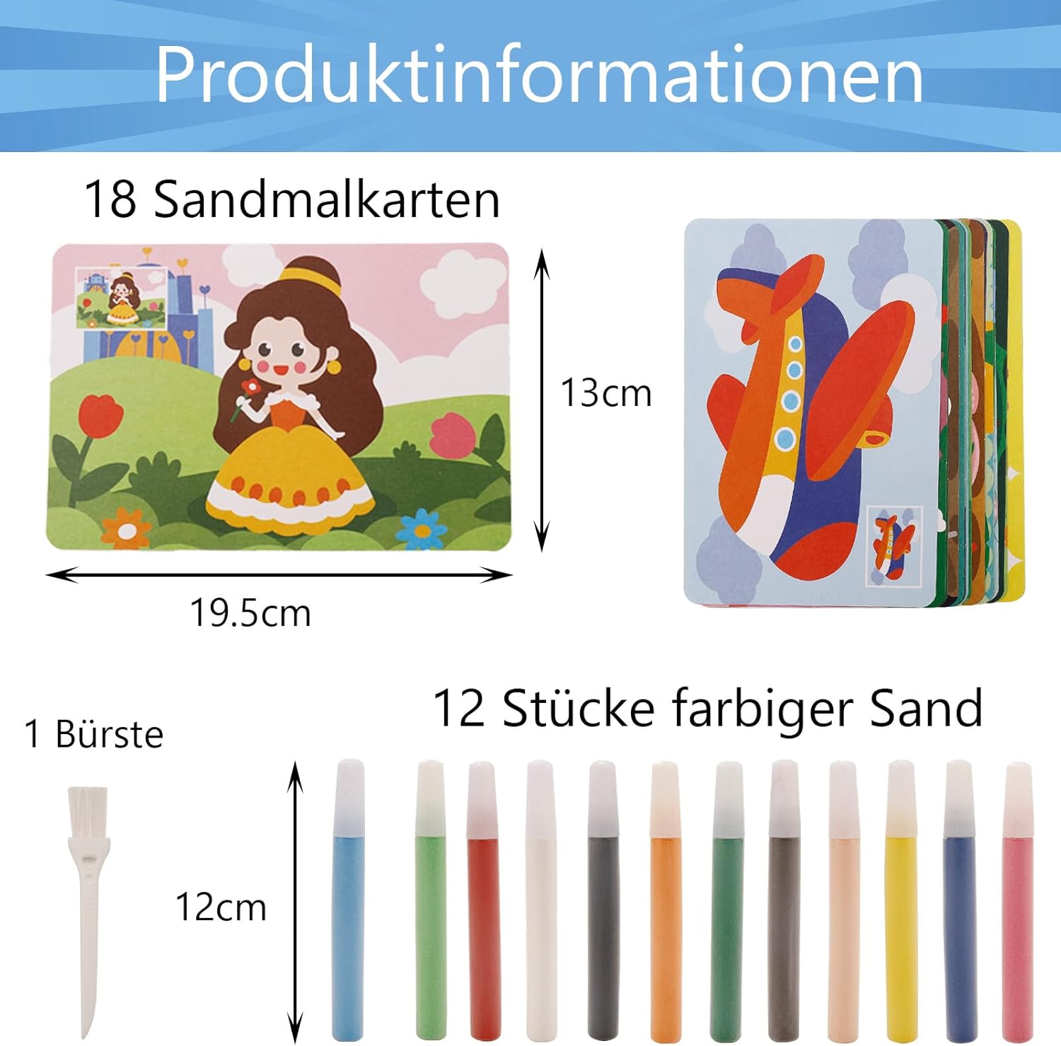 Il prodotto include: questo kit per pittura a sabbia per bambini include 12 sabbie colorate, 18 dipinti di sabbia e 1 pennello. Esistono diversi stili per soddisfare le tue esigenze creative Materiali di alta qualità: la sabbia colorata è realizzata in sabbia di quarzo naturale, con qualità eccellente, colore puro, sicuro e inodore. La pittura a sabbia è di buona qualità e non sbiadisce facilmente dopo la verniciatura Giocattolo educativo ideale: questo dipinto con sabbia per bambini è una combinazione di motivi e sabbia colorata. I ricchi motivi dei cartoni animati possono ispirare i talenti artistici dei bambini e allenare la loro creatività e immaginazione Facile da usare: questo dipinto con sabbia è molto facile da usare. Basta staccare le parti pre-tagliate per esporre la superficie adesiva, cospargere di sabbia su di esso, riempirle e rimuovere la sabbia rimanente per completare il lavoro Servizio clienti: questa pittura a sabbia per bambini ha una qualità eccellente ed è adatta per la decorazione della casa. Se ci sono problemi di qualità con il prodotto, non esitate a contattarci e vi forniremo un servizio clienti di alta qualità