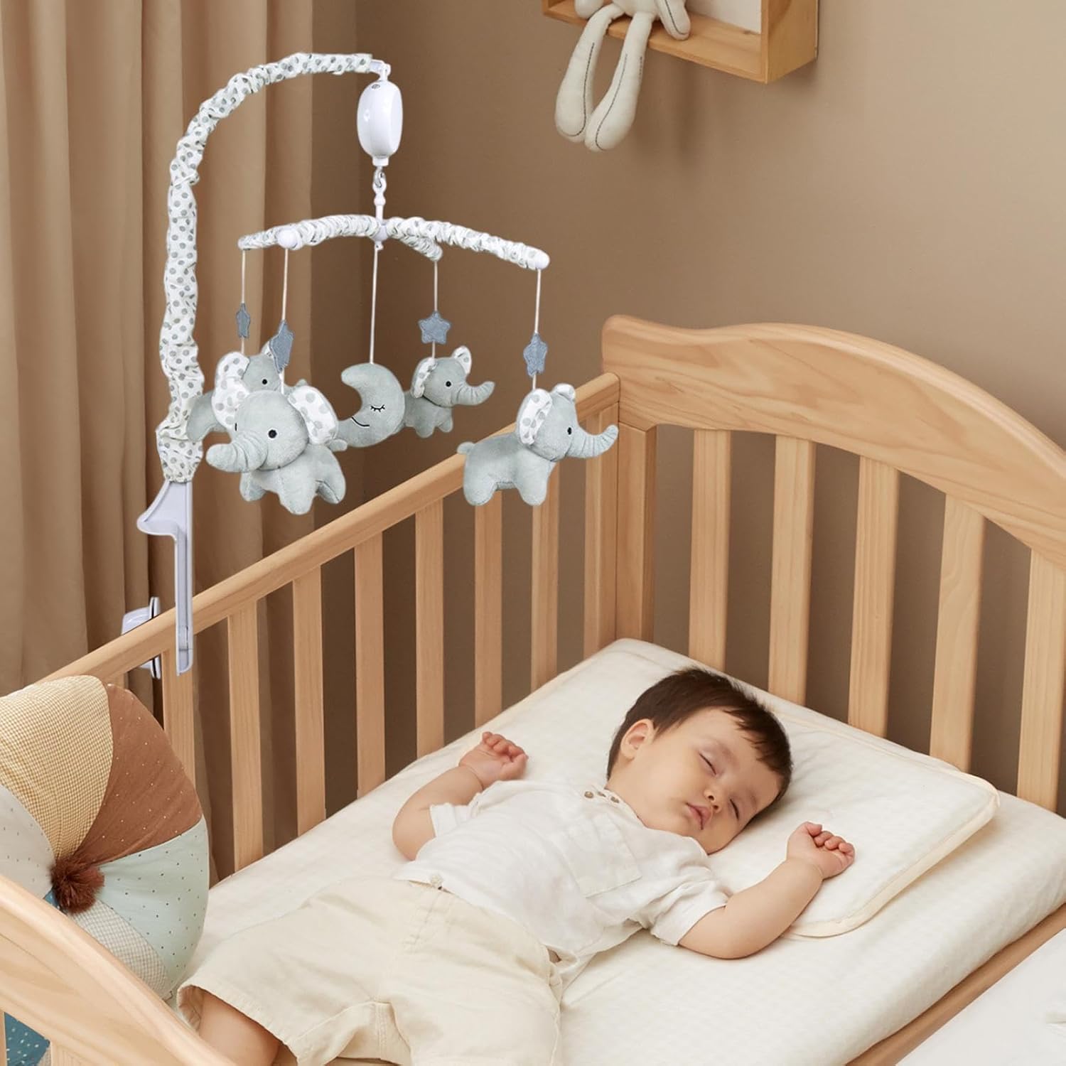 Materiale adatto alla pelle: squisitamente realizzato con materiali sicuri ed ecologici, i peluche offrono un tocco morbido e delicato, ideale per i bambini da esplorare e tenere Promuovi il sonno con armonia: dotato di una scatola musicale rilassante di orologio, questo culitto mobile suona ninne nanne per calmare il tuo bambino e aiutare a dormire pacificamente Migliora lo sviluppo delle abilità motorie: giocattoli colorati e interattivi di peluche promuovono lo sviluppo cognitivo accattivante e stimolante i sensi del bambino, promuovendo la curiosità e l'esplorazione durante il gioco Ampiamente usato: adattabile senza sforzo a presepi, culla e letti per la scuola materna, creando un decorativo accogliente e funzionale per i bambini, indipendentemente dal genere Attaccamento senza sforzo: fissare saldamente la culla per la culla musicale di elefante usando le clip incluse, garantendo una configurazione senza intrattenimento e gioia per tuo figlio