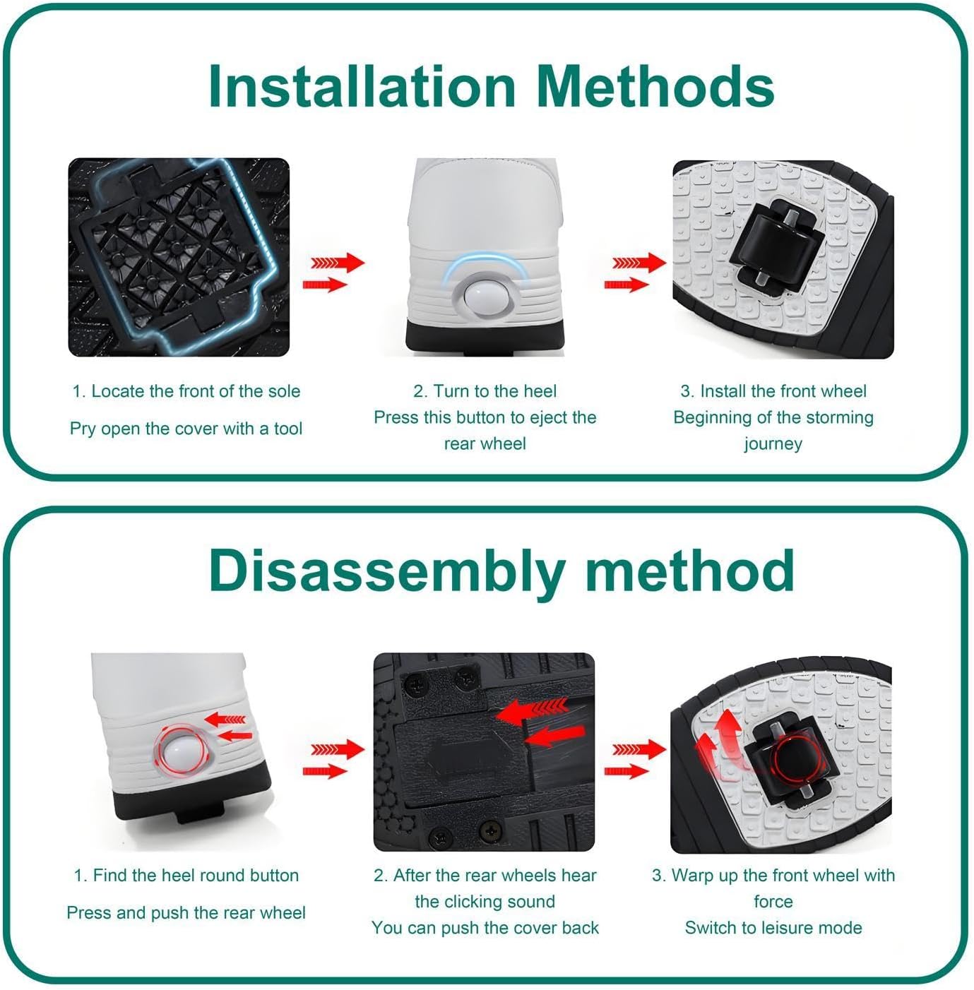 ✈ SCARPE PER PATTINI A ROTELLE 2 IN1 : I pattini a rotelle hanno queste ruote, sono uniche per le altre scarpe. C'è un bottone sul retro della scarpa. Premilo e la ruota si aprirà. Tenere premuto il pulsante, far scorrere la ruota nella piastra di base e rilasciare. Quindi puoi usare sia pattini a rotelle che normali scarpe sportive. Sicuro e comodo, lascia il bambino spensierato! ✈ MATERIALE DI ALTA QUALITÀ: i pattini a rotelle regolabili multifunzionali hanno una tomaia e una fodera delle scarpe comode e traspiranti, suole resistenti all'usura e una buona elasticità. Selezioniamo il materiale superiore per realizzare pattini a rotelle di alta qualità. ✈ RESISTENZA ALLO SCIVOLAMENTO: le scarpe da ciclismo con una buona presa migliorano la resistenza allo scivolamento del pneumatico imitando la funzione a dente di sega del rullo. Garantire la stabilità e la sicurezza del movimento. Usa i lacci delle scarpe tradizionali come le scarpe da ginnastica per regolare i lacci per una sensazione confortevole. ✈ PATTINI A ROTELLE MULTIFUNZIONALI: i pattini a rotelle hanno più funzioni delle scarpe da ginnastica, come scarpe da skate, scarpe da corsa, pattini a rotelle, come scarpe sportive all'aperto, scarpe da skateboard. Anche i pattini a rotelle sembrano molto ricchi e alla moda! Le scarpe più soddisfacenti! ✈ IL NOSTRO SERVIZIO: ci sforziamo sempre di offrire un servizio clienti migliore. Se hai domande su questo prodotto, ti preghiamo di contattarci, ti risponderemo il prima possibile.