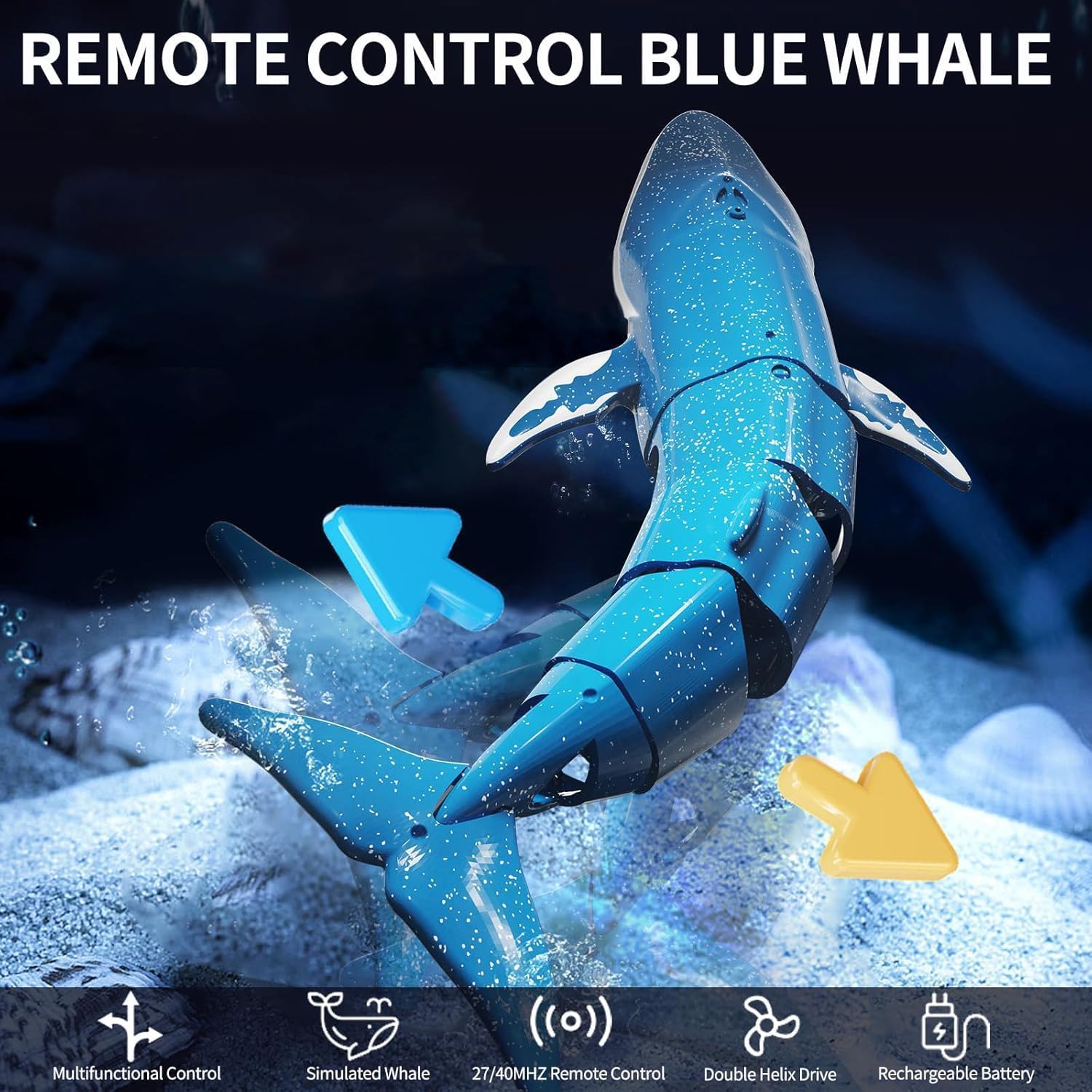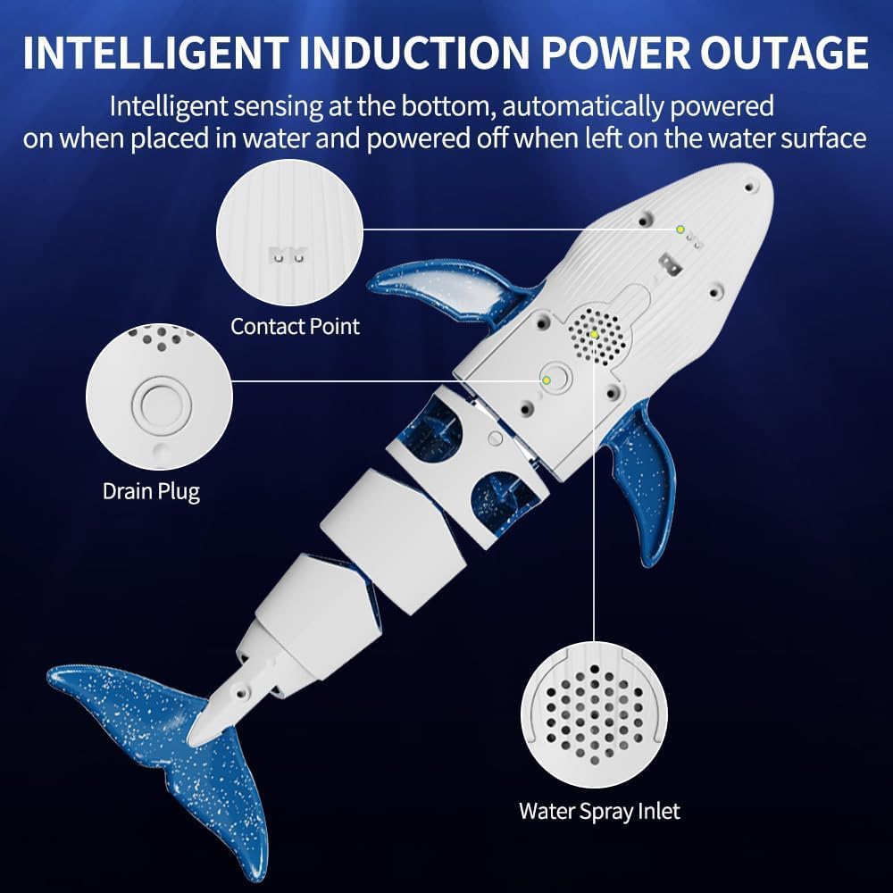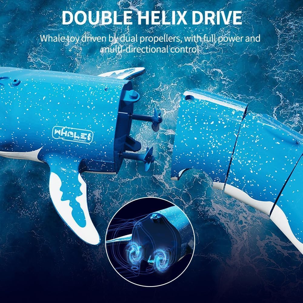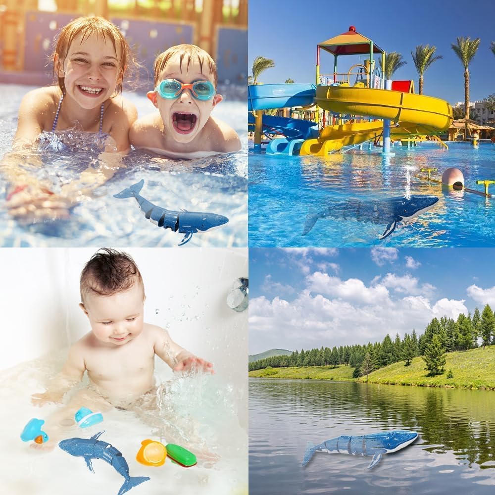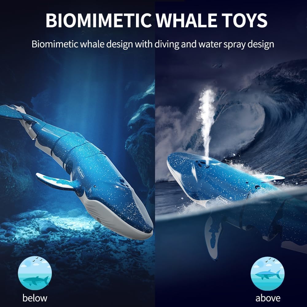 Balena telecomandata: i giocattoli balena di simulazione hanno un design di immersione e spouting, immergersi nella profondità dell'acqua fino a 50 cm, può simulare la balena respirare, con il principio della pompa dell'acqua per ottenere l'effetto del giocattolo balena galleggiante spouting. RC 40/27 MHz: il telecomando a balena giocattolo adotta il telecomando a infrarossi impermeabile, il design impermeabile impedisce efficacemente all'acqua di entrare all'interno, telecomando 40/27 MHz, più persone giocano a frequenze diverse senza disturbarsi a vicenda, la distanza del telecomando è fino a 10 m, non soggetta a restrizioni di distanza. Nota: prima di tutto bisogna mettere la balena in acqua prima che il telecomando possa rilevare la balena e accenderla. Facile da usare: questo giocattolo spray per balene telecomandato può andare avanti, girare a sinistra e a destra e spruzzare getti d'acqua quando galleggia in superficie. Ha una varietà di modalità operative in modo che i giocatori possano godersi meglio il gioco. Ricarica USB: i giocattoli a balena ricaricabili utilizzano batterie al litio ricaricabili da 3,7 V, caricare per 30 minuti, tenere per circa 10-15 minuti, viene fornito con un cavo USB, rimuovere la balena blu dall'acqua dopo l'uso, non metterlo in acqua per un lungo periodo per evitare danni alla batteria. Regali adatti per i bambini: puoi nuotare, immergere e schizzare la balena telecomandata in acqua per suscitare l'interesse e la passione del tuo bambino per la natura. È anche un ottimo regalo per occasioni come Halloween, Ringraziamento, Natale o compleanno.