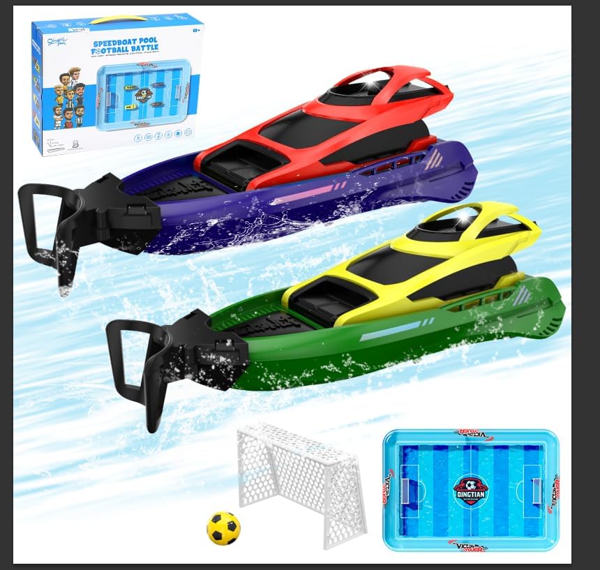 Giocattoli per barche RC: barca RC con telecomando a 2,4 GHz. Motore potente, molto suonabile Applicazione: adatto per l'uso in piscine, fontane da giardino o acqua, questo giocattolo da barca telecomandato è un popolare giocattolo estivo per i bambini Barca RC versatile: barca RC con piscina gonfiabile e accessori per calci da calcio per acrobazie incredibili e manovre precise. È la barca RC perfetta per divertirti sull'acqua Sistema Water Sense: i sensori intelligenti attivano il motore solo quando è a pieno contatto con l'acqua per garantire la sicurezza di bambini e adulti Miglior regalo: questa barca telecomandata è il regalo di compleanno o di festa perfetto. Che si tratti di una piscina, di un lago o di una vasca da bagno, questa barca RC flessibile offre ore di divertimento all'aria aperta per ragazzi, ragazze e adulti dagli 8 anni in su
