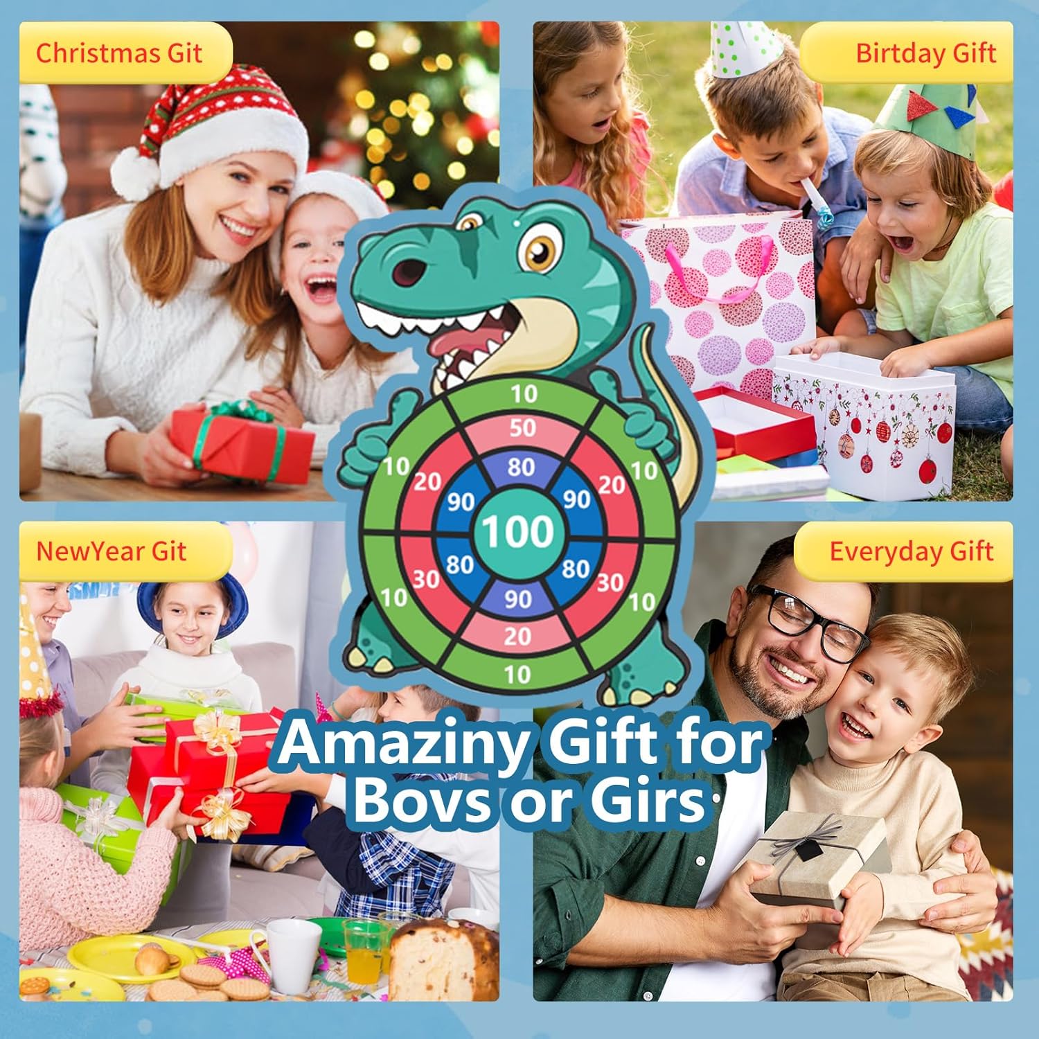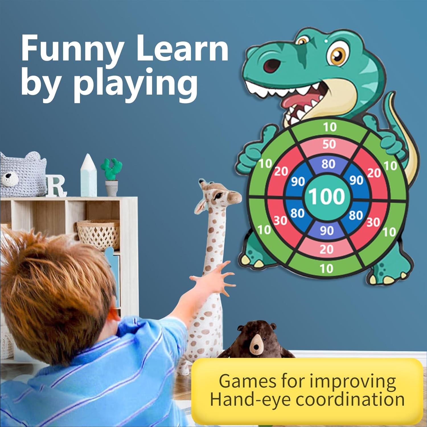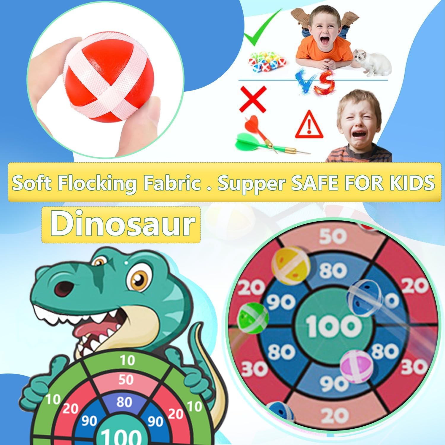 Set di Freccette per Dinosauri in Velcro Aggiornato: diverso dai tradizionali giochi di tiro e freccette, questa versione di freccette per dinosauri è realizzata in morbido velluto ispessito, che non solo può attaccarsi saldamente alle palline appiccicose, ma è anche leggero e può essere piegato per riporlo facilmente e portatile e può essere giocato all'interno e all'esterno. I dardi rotondi hanno la forma di una palla e di velcro, che è più sicuro da usare e non cadrà causando danni. Il velcro è rimovibile, rendendo il riciclaggio più rispettoso dell'ambiente! Diversi Modi di Giocare: il gioco di tiro con freccette dei dinosauri include una versione di freccette, un arco e frecce appiccicosi e 24 palline adesive di diversi colori. Non solo puoi lanciare la palla direttamente con le mani per esercitarti nella mira, ma puoi anche caricare la palla appiccicosa nell'arco e nella freccia e spararla! L'arco e la freccia con palline adesive possono essere caricati con 6 palline adesive contemporaneamente. Può soddisfare le esigenze di più bambini o giochi di squadra per la competizione! Più di un Semplice Gioco: attraverso le freccette, i giochi di tiro con l'arco possono divertire i bambini e rafforzare i legami affettivi tra familiari e amici. Può anche esercitare la coordinazione occhio-mano e le capacità motorie dei bambini. Con i numeri segnati sul bersaglio delle freccette, i bambini possono calcolare i punteggi nei giochi competitivi, esercitarsi nelle abilità matematiche e divertirsi giocando e imparando. Materiali di Sicurezza: la versione del dardo di dinosauro è realizzata in velluto ispessito sicuro, non tossico e durevole, mentre le palline e gli archi appiccicosi sono realizzati in materiale ABS atossico e durevole di alta qualità, che è molto resistente e non facile da indossare e non causerà danni a bambini, animali domestici, pareti, lesioni ai mobili, i bambini possono giocare con facilità. Giocattoli da esterno/interno per ragazzi/ragazze dai 3 agli 8 anni REGALO PER BAMBINI 3 4 5 6 7 8 ANNI: Tutti i bambini adorano i dinosauri! Il vivace gioco di freccette dei dinosauri è un regalo ideale per tutto l'anno e un giocattolo di Natale per i bambini. Un regalo perfetto per la festa dei bambini, Halloween, il Ringraziamento, Capodanno, Natale e giochi di compleanno per bambini e un'ottima scelta come imbottitura per calze natalizie per bambini. Adatto a ragazzi e ragazze di 4 5 6 7 8 9 10 11 12 anni
