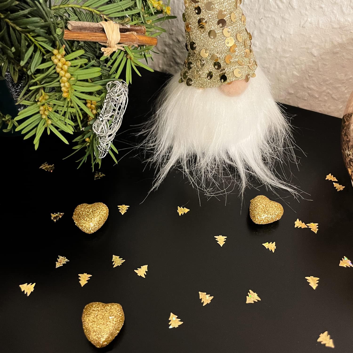 Quantità: ca. 16 g di coriandoli per albero di Natale bellissimi, scintillanti e iridescenti Colore: oro; Materiale: plastica Ogni coriandolo ha un diametro di ca. 0,8 cm. Ideale come decorazione da tavolo o decorazione decorativa per Natale, compleanni, feste di compleanno per bambini, feste a tema e molte altre occasioni speciali