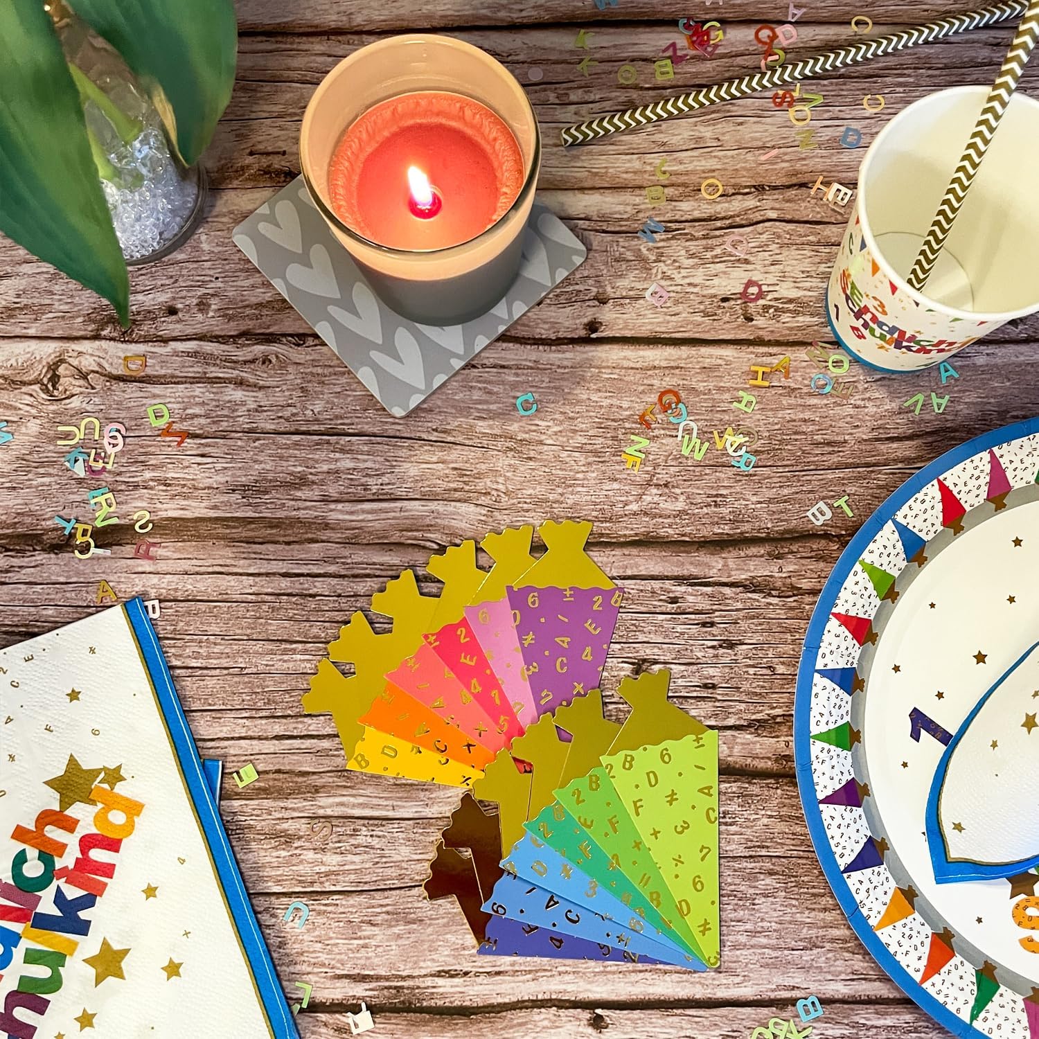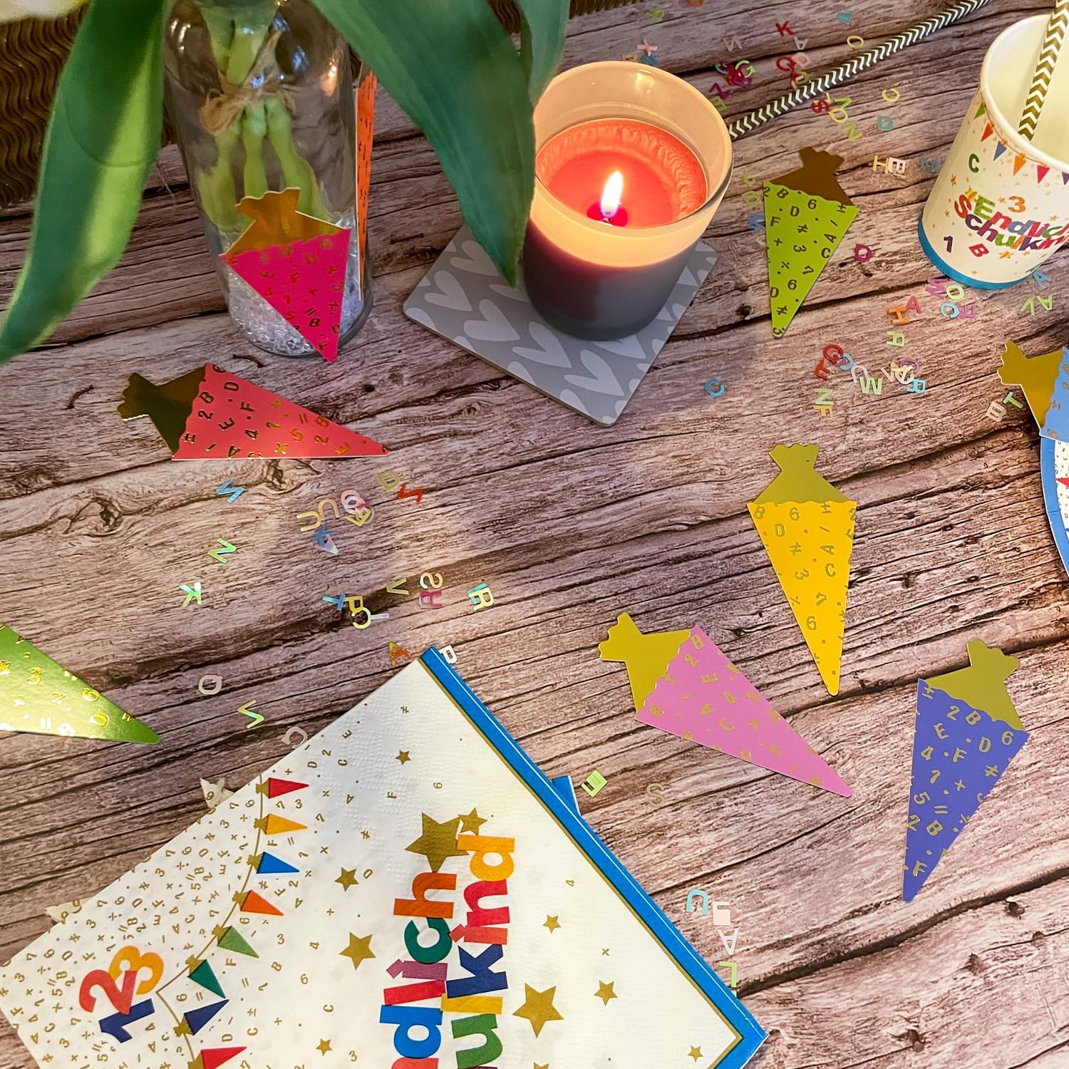 Fornitura del set di coriandoli con lettere: il set contiene 15 g di coriandoli con lettere colorati, ideali per l'introduzione scolastica di ragazzi e ragazze. Perfetto per decorazioni da tavola, progetti di bricolage e sacchetti regalo. Colori e materiale: i coriandoli colpiscono con i brillanti colori dell'arcobaleno che sono iridescenti e creano un'atmosfera allegra. Materiale: plastica. Dimensioni delle lettere dei coriandoli: ogni coriandolo misura 0,8 cm, ideale per versatili opzioni di decorazione. Usi: ideale per presentazioni scolastiche, feste di iscrizione scolastica, artigianato e decorazioni creative fai-da-te. Porta colore e gioia ad ogni celebrazione e ispira idee creative.