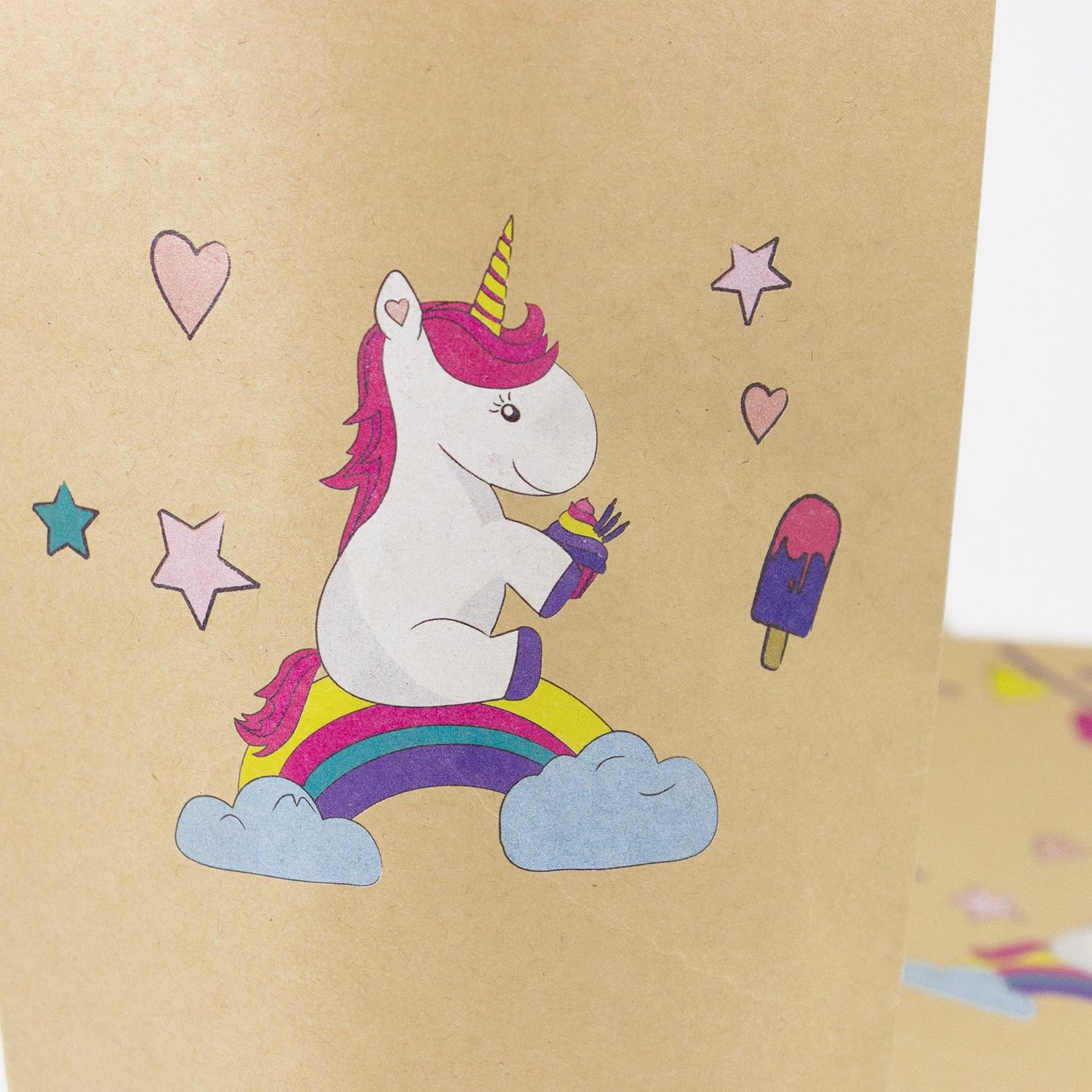 Quantità: 6 bellissimi sacchetti di carta con unicorno Materiale: carta Kraft Dimensioni per sacchetto: altezza 20 cm, larghezza 15 cm, profondità inferiore ca. Sacchetti regalo stabili da 5,5 cm/confezione con design di unicorno stampato con cura