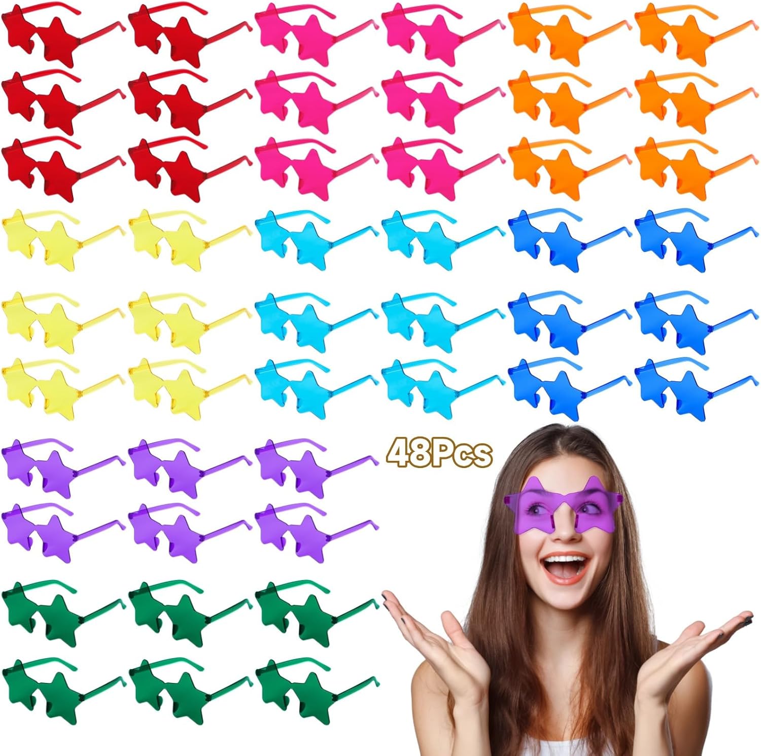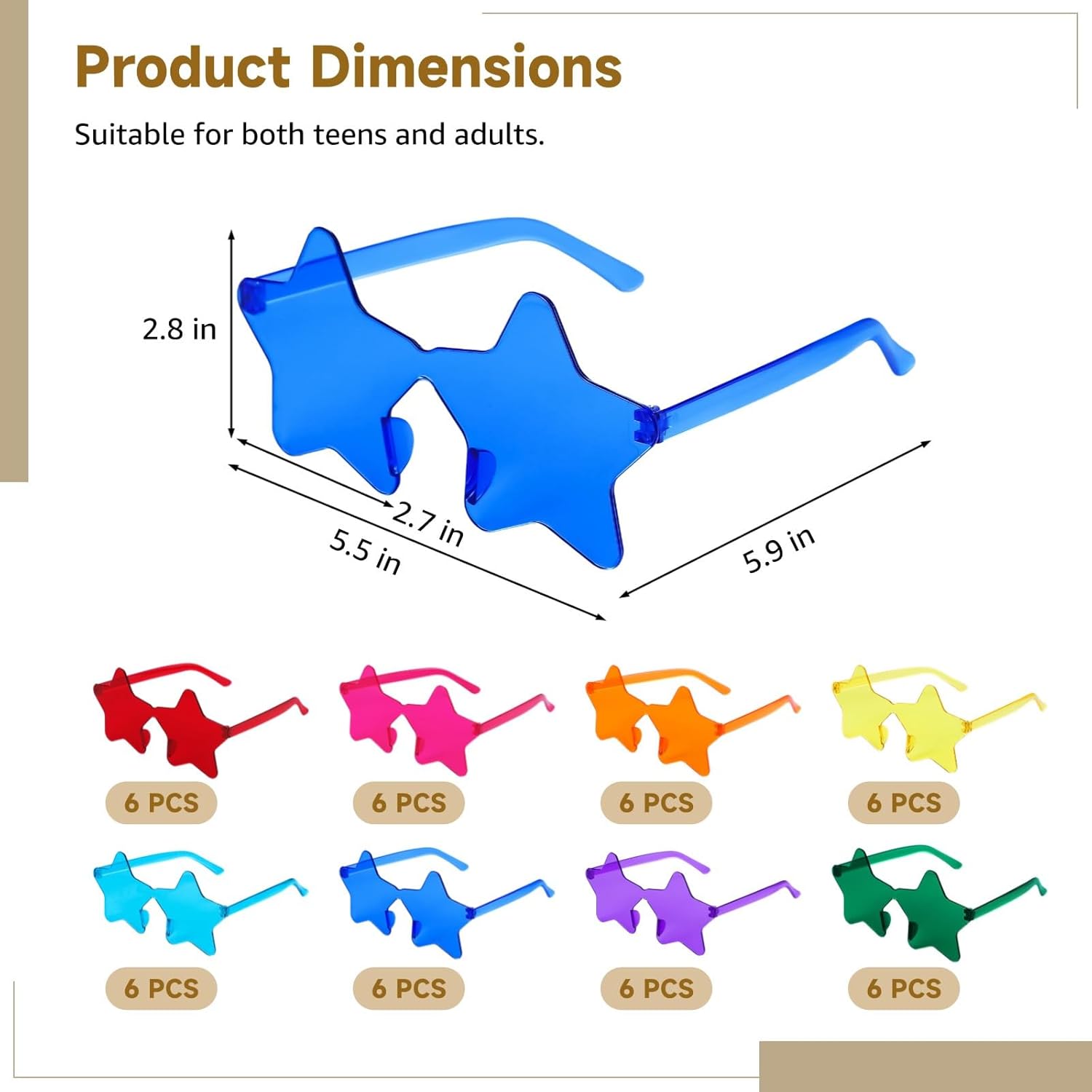 Colori vivaci: presenta 48 occhiali da sole a forma di stella in una vasta gamma di colori vivaci come viola, ceruleo, chartreuse, mandarino e oro; inietta un pezzo unico nel suo genere a qualsiasi evento; come feste a tema, occasioni o collezioni di ricordi fotografici Straordinario contorno stellare: esprimiti con una forma unica e attraente a stella; coloro che vogliono esibire una dichiarazione di moda allegra e avventurosa apprezzeranno questo; introduce eccentricità e affascina all'incontro Composizione robusta: questi occhiali da sole a stella sono realizzati in plastica e longevità; immuni a spaccature, deformazioni, sbiadimento; possono essere utilizzati in molte occasioni Vestibilità adattabile: le cornici in vetro sono lunghe 14 cm, larghe 7,1 cm, comprese le gambe da 15 cm; la dimensione si adatta a adolescenti e persone mature; garantisce una vestibilità accogliente; supporta un aspetto sicuro e alla moda Ampio utilizzo: adatto per programmi scolastici, yuletide, festival musicali e Halloween; elevare il divertimento al jamboree; utilizzare come supporto per le foto; crea un ambiente celebrativo