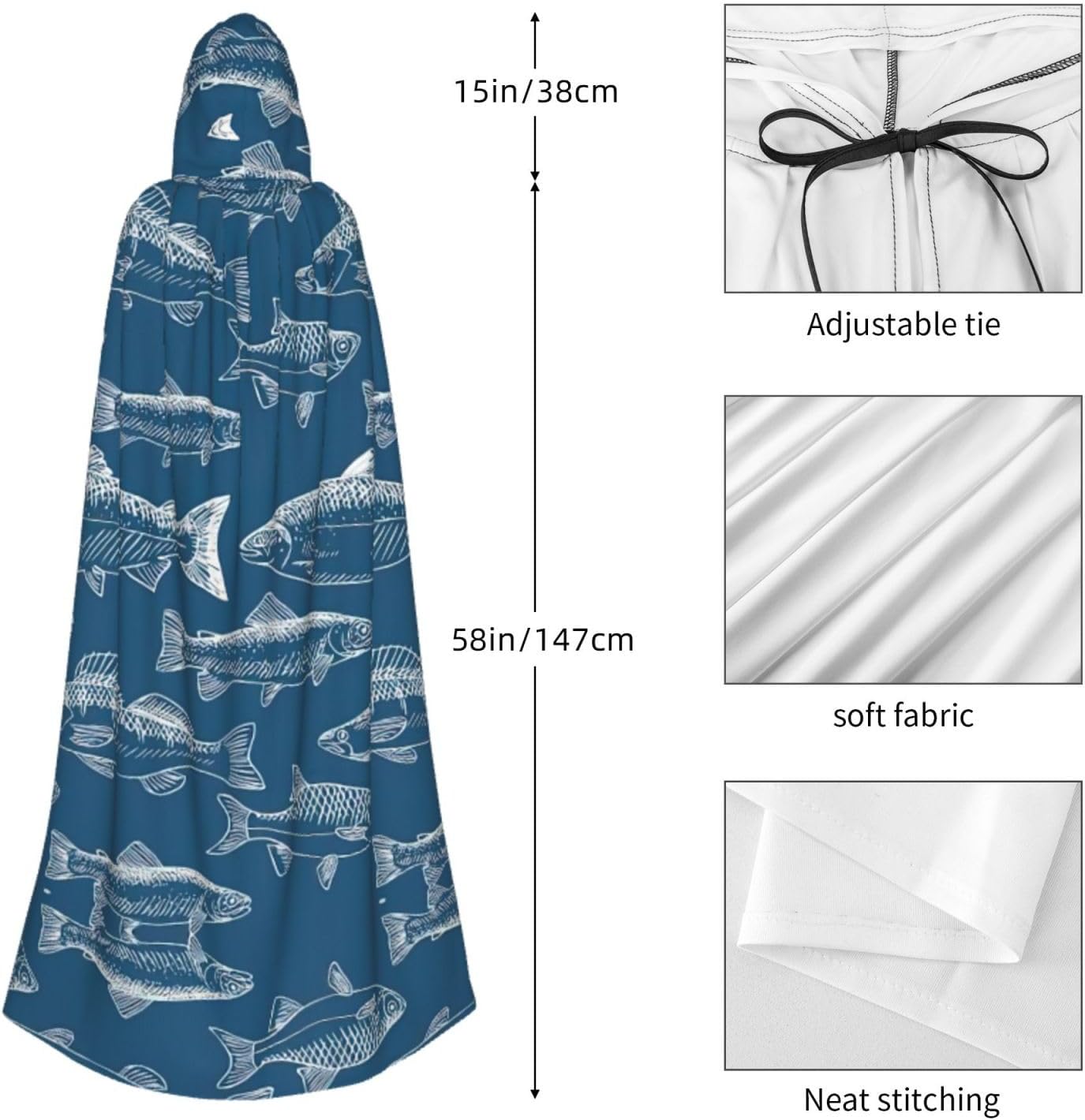 Realizzato in poliestere, questo mantello con stampa di pesci oceanici è comodo da indossare e senza prurito. Il suo design a tutta lunghezza lo rende una taglia A adatta a tutti per adulti e ragazzi. Distinguiti tra la folla ad Halloween, eventi di gioco di ruolo in costume, feste a tema, o in qualsiasi incontro o carnevale. Con design senza cerniera e colletto annodato, indossabilità è un gioco da ragazzi. Inoltre, è lavabile in lavatrice e facile da mantenere. Abbraccia lo spirito di Halloween con stile con il nostro mantello con cappuccio e fai un aspetto indimenticabile!