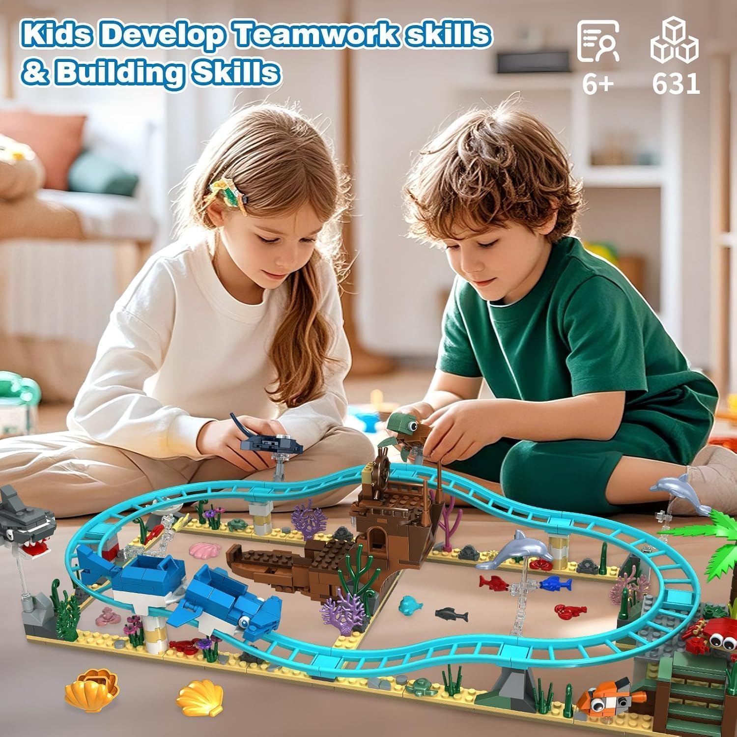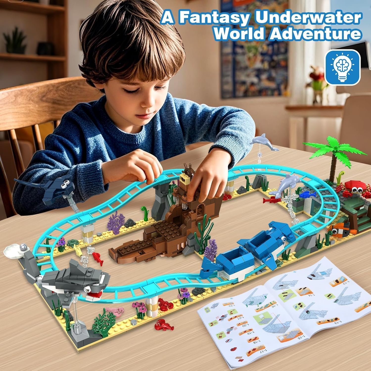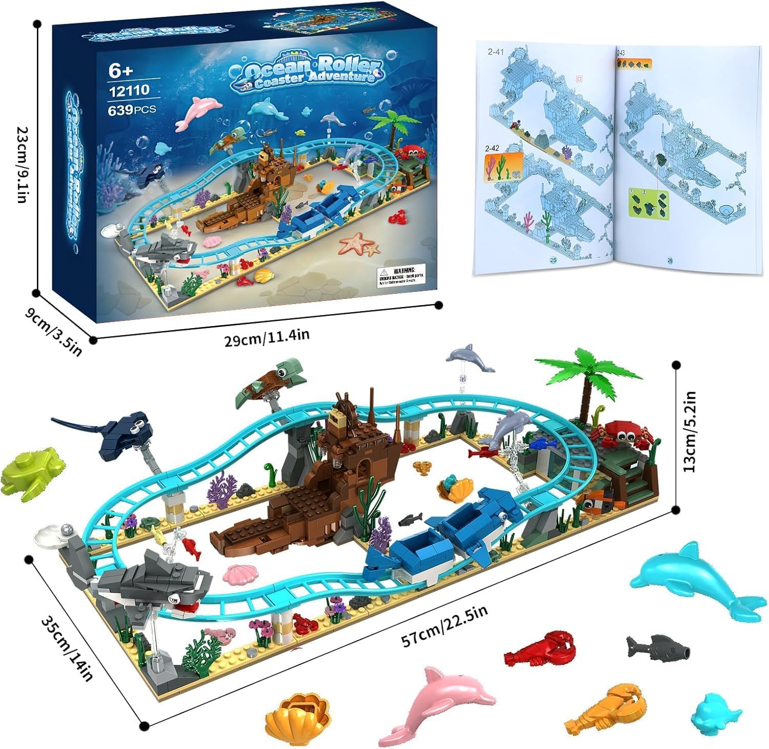Ocean Roller Coaster Adventure Playset: lascia che i bambini si immergano nelle fantasiose avventure subacquee! Abbiamo progettato balene, squali, carrelli di balene, tartarughe marine, barche, delfini, pesci, granchi e relitti per creare scenari infiniti. Include 12+ personaggi di animali marini e un relitto mobile per giochi di ruolo coinvolgenti. Facile da seguire e costruire: le istruzioni dettagliate e strutturate in modo chiaro aiutano i bambini a evitare la frustrazione, così i bambini e i loro amici possono concentrarsi completamente sulla creatività e sull'immaginazione, non su istruzioni complicate. I nostri grandi blocchi lisci si adattano perfettamente alle mani piccole. Questo giocattolo da 639 pezzi per ragazzi, ragazze e bambini a partire dai 6 anni rafforza la fiducia in se stessi quando costruiscono il proprio mondo oceanico in pochi minuti È adatto come regalo a sorpresa per la famiglia, i bambini, gli amici o gli adolescenti. Stimola la gioia della scoperta e la curiosità: usiamo materiale blu e vita oceanica per imitare le scene sottomarine. I bambini si sentono come se fossero in un vero ambiente sottomarino. Quando i bambini costruiscono modelli come funivie o relitti, possono creare liberamente i propri scenari di storia. I vostri bambini e i loro amici adoreranno questo set. Genitori e bambini possono lavorare insieme per costruire squali, tartarughe marine e barche, creare mondi oceanici unici e promuovere così la comunicazione e il lavoro di squadra. Materiali ecologici sicuri e durevoli: i nostri kit sono realizzati in plastica ABS atossica e priva di BPA. I bordi lisci superano i test di sicurezza ASTM/CPC e sono conformi agli standard di sicurezza degli Stati Uniti per garantire che non abbiano effetti nocivi sui bambini. Così giocare per bambini a partire dai 6 anni di età è senza preoccupazioni (nota: i prodotti in mattoncini devono essere utilizzati sotto la supervisione di un adulto). Regalo perfetto per piccoli esploratori: confezionato in una scatola riutilizzabile con istruzioni dettagliate illustrate (lingua italiana non garantita). Ideale come regalo per Natale, compleanni, festività, regali per feste, giocattoli novelty, stivali, regali di San Valentino per bambini, regali di Pasqua per bambini, premi per bambini, premi per bambini, premi per bambini, premi premi per ricompense, ecc.