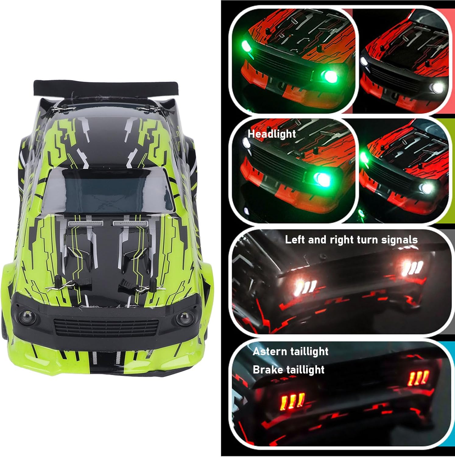 ** 1. Gyroscope avanzato per un controllo di deriva preciso **: sperimentare la deriva a livello professionale con un giroscopio integrato che regola automaticamente l'equilibrio dell'auto durante le manovre ad alta velocità. La tecnologia garantisce una deriva più giri più nitidi e una maggiore stabilità, rendendo facile per i principianti padroneggiare le tecniche avanzate dando agli esperti un controllo senza pari. ** 2. Performance potenti con legami ad alta velocità **: Nleashes Extreme Speed e Accele Ion con un robusto Featuannulus un motore ad alte prestazioni e una batteria al litio da 1500 mAh da 7,4 V. RC Car offre forti vorticose e legami rapidi, arrivando velocità impressionanti per razze a bassa carico. ** 3. Design a prova di acqua per divertimento per tutte le stagioni **: l'auto di deriva RC è progettata con efficace resistenza d'acqua, consentendo l'opportunità su superficiali umidi, pozzanghere o persino neve leggera senza danni. Elettronica a sedere in guardia il motore, la batteria e il giroscopio dal contenuto di acqua. ** 4. L'illuminazione a LED dinamica per l'impatto visivo **: elevare l'esperienza di corse con luci a LED interessanti e personalizzabili che migliorano sia l'estetica che la visibilità. Molteplici modalità di illuminazione creano straordinari effetti visivi durante le corse diurne o notturne, imitando il vero tocco per auto da corsa. ** 5. Il modello in scala compatto, agile e pronto per la corsa **: 1/14 combina la portabilità con un'eccezionale agilità, con un corpo ABS leggero ma resistente e un design semplificato per il controllo senza sforzo. Incluso offre una gestione intuitiva, mentre l'installazione pre-assemblata non richiede installazione complicata.
