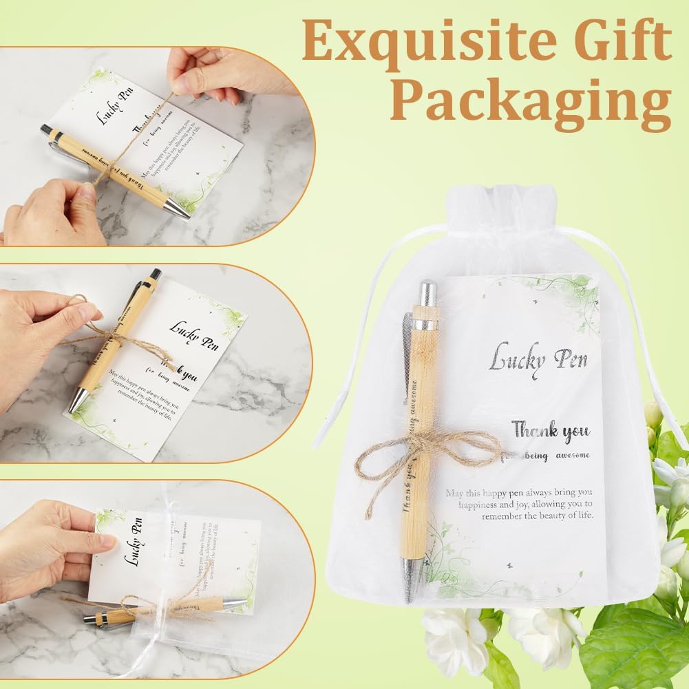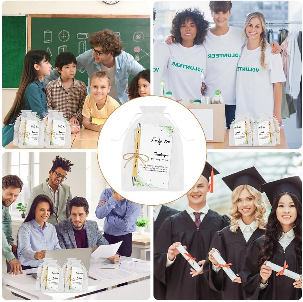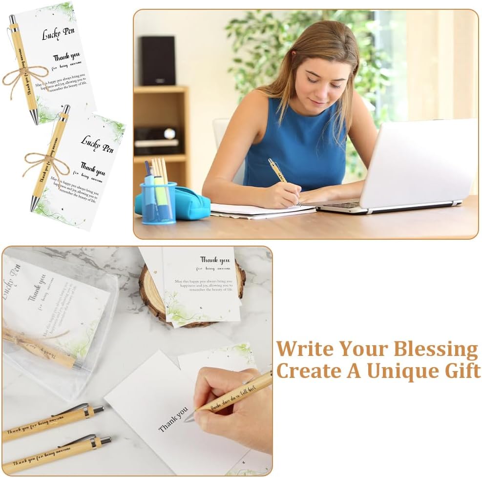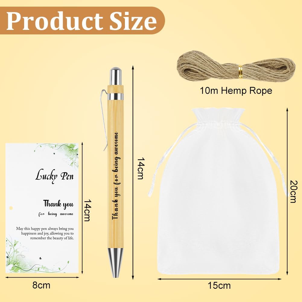 ✨【Contenuto della confezione】 Questo set include 24 penne a sfera a scatto in legno di alta qualità, 24 biglietti dal design curato, 24 eleganti sacchetti in organza e 1 corda da 10 metri. (Nota: a causa delle caratteristiche naturali di crescita del bambù, la consistenza e il colore di ogni penna possono variare. Questo è normale: ogni penna è unica.) ⚡【Eccellente Artigianato】Le penne a sfera sono realizzate in robusto legno di bambù, che non è solo resistente, ma anche caldo e piacevole al tatto. L'incisione sul corpo della penna non solo evidenzia la delicata texture, ma trasmette anche sincerità e autenticità, sottolineandone l'alta qualità. Riponi la penna e i biglietti insieme nel sacchetto di organza per un look sofisticato e un messaggio diretto al destinatario delle tue cure e attenzioni. ☘️【Un regalo stimolante】Il biglietto di ringraziamento presenta una citazione ispiratrice accuratamente selezionata. Queste parole calde e potenti possono ispirare il destinatario ad andare avanti, superare le sfide e affrontare il lavoro con maggiore compostezza. Insieme a un elegante sacchetto di organza e un cordino di lino, le penne sottolineano l'eleganza dell'insieme, rendendo il messaggio di auguri e gratitudine ancora più sentito e toccante. 🖊️【Scrittura fluida】Le penne sono riempite con inchiostro nero di alta qualità, che garantisce linee nitide e uniformi. Si asciuga rapidamente ed è resistente alle sbavature. Le penne sono perfette per la scrittura quotidiana, il disegno, gli schizzi, la firma e la calligrafia e sono facili da maneggiare. Sono progettate per una facile conservazione e un utilizzo a lungo termine, il che le rende estremamente pratiche. 🎁【Versatili】Queste penne ispiratrici sono ideali per esprimere i tuoi sentimenti: come regalo di addio, di ringraziamento o come regalo a colleghi o insegnanti per esprimere amore e affetto. Aggiungono anche un tocco caldo a feste di compleanno, cene di addio, eventi di squadra e molto altro. Sono regali premurosi che combinano stile e funzionalità.