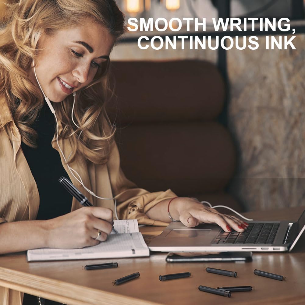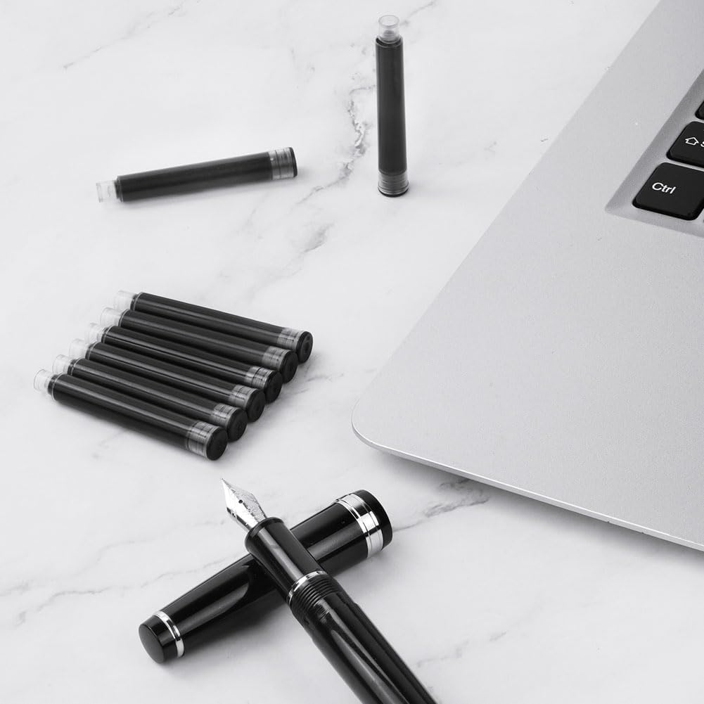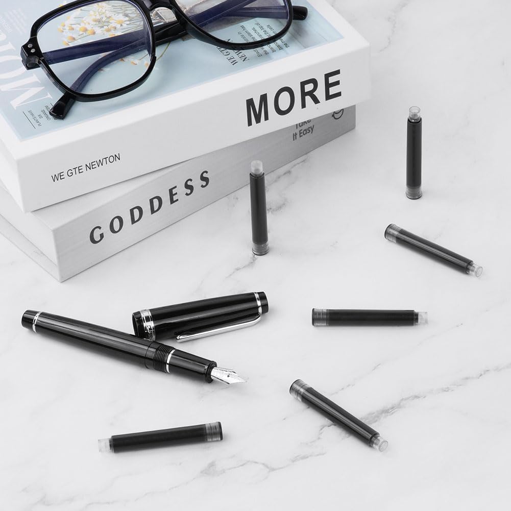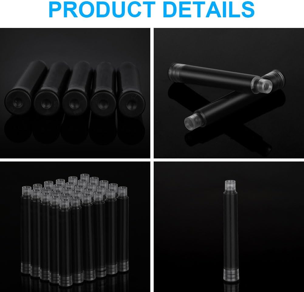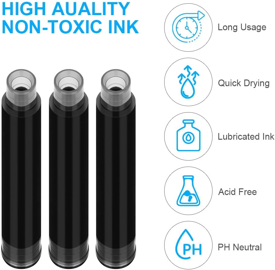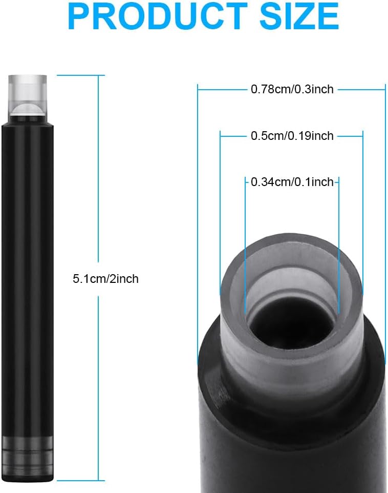 Set di cartucce d'inchiostro:OFFCUP Inchiostro per penna stilografica,60pcs inchiostro nero, diametro del foro 3,4 mm,e dimensioni si adattano a diverse stilografiche. Facile da installare: Cartucce di inchiostro per penne facile da installare, basta aprire la penna e premere con decisione la cartuccia d'inchiostro finché non si sente un "clic" e l'installazione ha esito positivo. Facile da scrivere: Senza rompere il flusso di inchiostro, goditi un'esperienza di Inchiostro per penna stilografica fluida e ottimale mentre la penna stilografica scivola elegantemente sulla carta. Asciugatura rapida:Metti Cartucce d'inchiostro per penna,quando si scrive con una penna, solo pochi secondi per asciugare, assicurando che i momenti importanti di scrittura non vengano rovinati da macchie o sbavature. Sostenibile e rispettosa dell'ambiente: Invece di acquistare una nuova penna,metti la cartuccia d'inchiostro nella penna stilografica originale,l'uso sostenibile.Adatto per scuola elementare, media, liceo, università, cancelleria ufficio.
