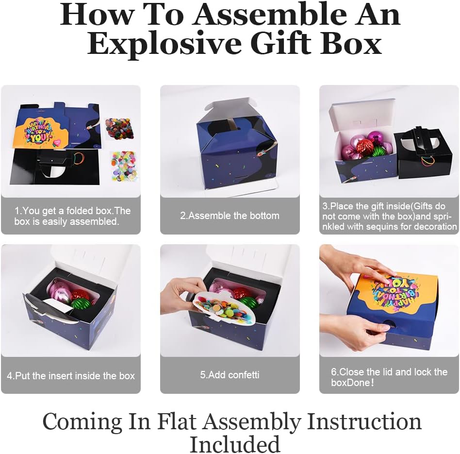 🌟【Pacchetto incluso】1 confezione regalo di coriandoli esplosivi e 2 confezioni di coriandoli. Suggerimento: puoi fare riferimento al video per assemblare la confezione regalo di coriandoli. 🌟 【Confezione regalo unica】 Devi solo mettere il regalo nella confezione regalo. La confezione regalo dal design di coriandoli esplosivi sarà una sorpresa indimenticabile per la tua famiglia e i tuoi amici. Dopo aver aperto la confezione regalo, i coriandoli verranno cosparsi sul destinatario, lasciandolo a bocca aperta. 🌟【Confezione regalo a sorpresa】Nessuno sospetterà che ci sia una vera "bomba" nascosta in una confezione regalo apparentemente ordinaria! - Ricca di colori, questa sorpresa iniziale non sarà mai dimenticata! Una confezione regalo del genere ha sorpreso anche le persone vicine. 🌟 【Alta qualità】 La nostra confezione regalo di coriandoli esplosivi è realizzata in cartone di alta qualità, sicuro e durevole. Ogni confezione regalo è sottoposta a severi controlli di qualità e viene spedita con cura. 🌟 【Scenari applicabili】 Le nostre scatole di coriandoli esplosive sono perfette come scatole a sorpresa per compleanni, San Valentino, matrimoni, proposte di matrimonio, anniversari, Natale e tutti i tipi di celebrazioni e congratulazioni, mettendo sicuramente in risalto il tuo regalo ai festival.