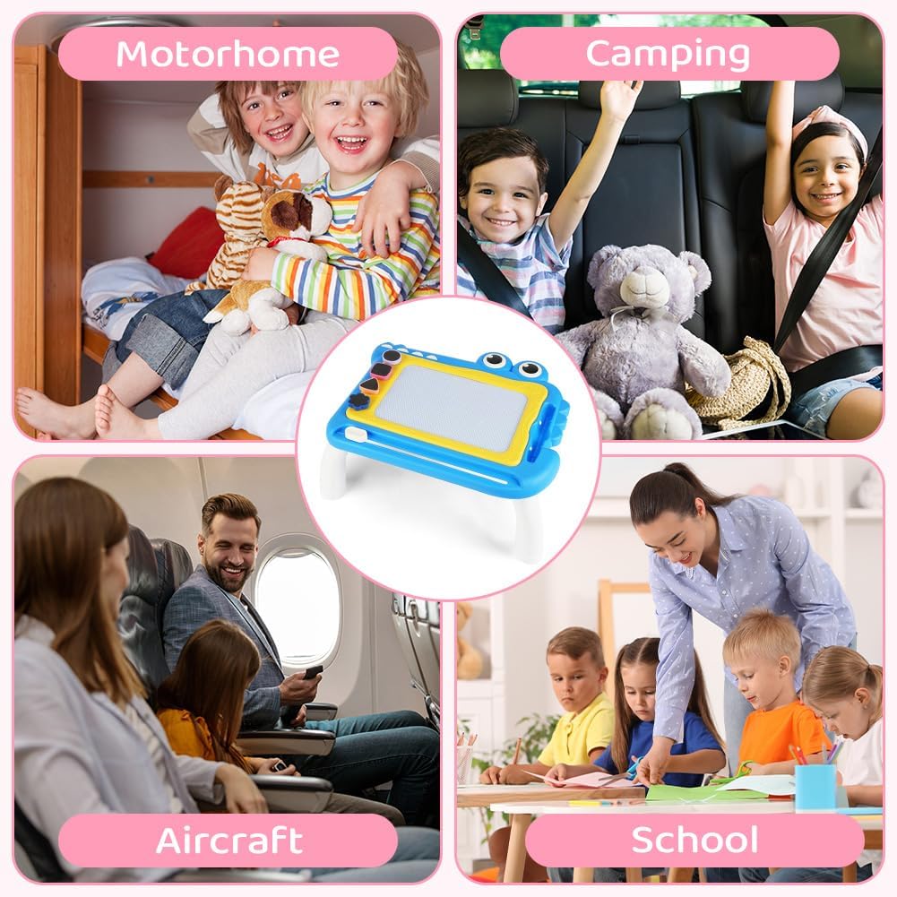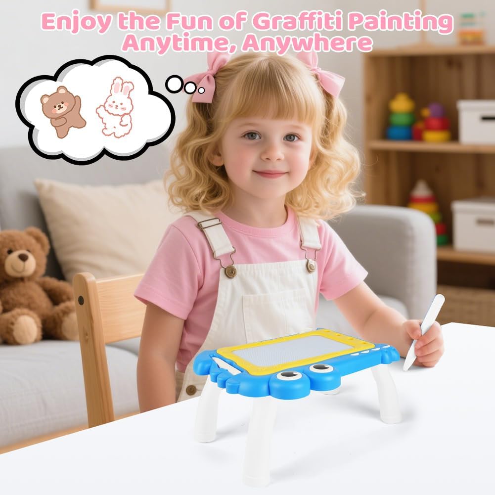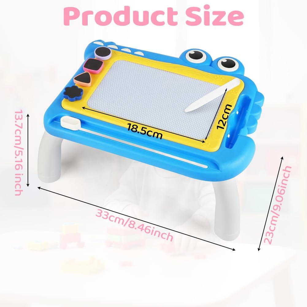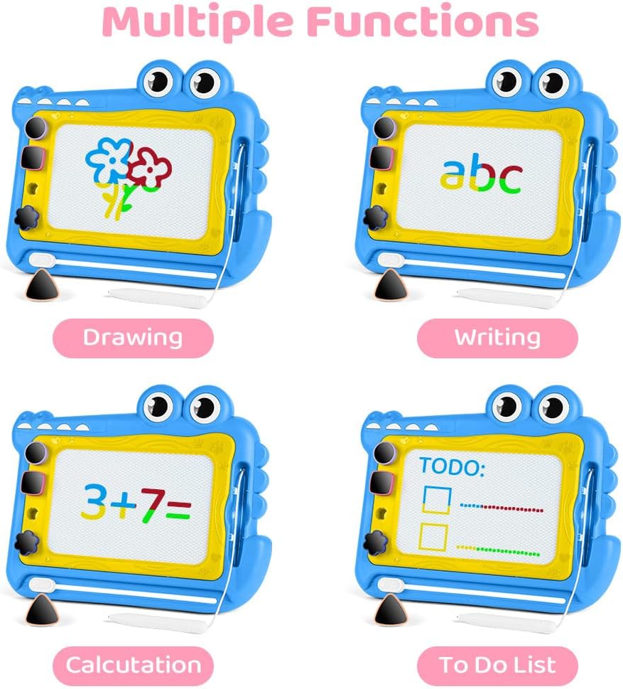 🎨【Materiale sicuro】Questa lavagna da disegno magnetica è realizzata in plastica ABS di alta qualità e resistente. La lavagna per graffiti è atossica, sicura e affidabile, non contiene BPA ed è adatta a bambini da 1 anno in su. La lavagna magica presenta bordi lisci e arrotondati e una testa della penna arrotondata per prevenire lesioni, rendendola molto sicura per i bambini. I genitori possono lasciare che i bambini da 1 anno in su giochino con questo giocattolo educativo in tutta sicurezza. 🎨【Tavolo da disegno colorato】Questo tavolo da disegno presenta quattro diverse aree colorate: blu, rosso, giallo e verde, permettendo ai bambini di divertirsi con il disegno colorato. I colori vivaci non solo attirano l'attenzione dei bambini, ma stimolano anche la loro creatività e immaginazione. Allo stesso tempo, allenano la coordinazione occhio-mano e migliorano la percezione dei colori. 🎨【Design facile da cancellare】La tavoletta da disegno è facile da cancellare. Basta far scorrere il pulsante di cancellazione per azionarla. Indipendentemente da ciò che il bambino disegna, anche se l'immagine è disordinata, può essere facilmente cancellata e ricreata. Questo offre ai bambini un ambiente di disegno pulito e sicuro e fa risparmiare ai genitori il tempo di pulire i vestiti o le mani sporche dei propri figli. 🎨【Timbri carini】Sono inclusi 4 timbri diversi per aggiungere divertimento al blocco da disegno; il foro più profondo impedisce che i timbri cadano e si perdano facilmente. Con l'aiuto di timbri diversi, i tuoi bambini avranno più opzioni per disegnare. Offrono ai tuoi bambini l'opportunità di usare vividamente la loro immaginazione per creare bellissime scene nella loro mente. 🎨【Regali adatti per bambini dai 3+ anni in su】Con questa lavagna colorata, le bambine possono esercitarsi a scrivere ed esprimere le proprie idee e la propria creatività attraverso la pittura e la scrittura, rendendo l'apprendimento davvero divertente. Sia all'interno che all'esterno, le bambine possono divertirsi senza limiti dipingendo. È un regalo premuroso e una scelta adatta per compleanni, Pasqua, Natale, Ringraziamento, Capodanno e altre festività.