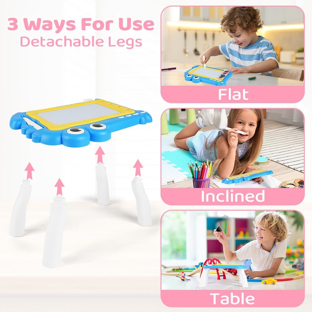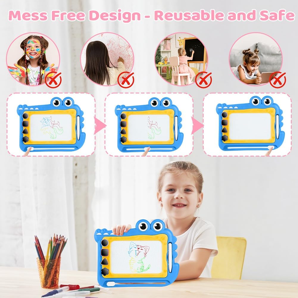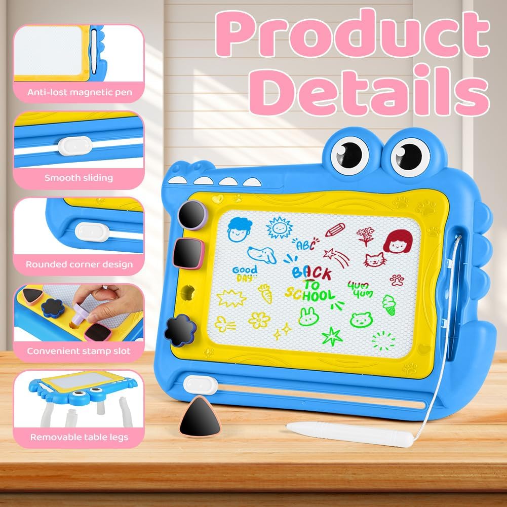 🎨【Materiale sicuro】Questa lavagna da disegno magnetica è realizzata in plastica ABS di alta qualità e resistente. La lavagna per graffiti è atossica, sicura e affidabile, non contiene BPA ed è adatta a bambini da 1 anno in su. La lavagna magica presenta bordi lisci e arrotondati e una testa della penna arrotondata per prevenire lesioni, rendendola molto sicura per i bambini. I genitori possono lasciare che i bambini da 1 anno in su giochino con questo giocattolo educativo in tutta sicurezza. 🎨【Tavolo da disegno colorato】Questo tavolo da disegno presenta quattro diverse aree colorate: blu, rosso, giallo e verde, permettendo ai bambini di divertirsi con il disegno colorato. I colori vivaci non solo attirano l'attenzione dei bambini, ma stimolano anche la loro creatività e immaginazione. Allo stesso tempo, allenano la coordinazione occhio-mano e migliorano la percezione dei colori. 🎨【Design facile da cancellare】La tavoletta da disegno è facile da cancellare. Basta far scorrere il pulsante di cancellazione per azionarla. Indipendentemente da ciò che il bambino disegna, anche se l'immagine è disordinata, può essere facilmente cancellata e ricreata. Questo offre ai bambini un ambiente di disegno pulito e sicuro e fa risparmiare ai genitori il tempo di pulire i vestiti o le mani sporche dei propri figli. 🎨【Timbri carini】Sono inclusi 4 timbri diversi per aggiungere divertimento al blocco da disegno; il foro più profondo impedisce che i timbri cadano e si perdano facilmente. Con l'aiuto di timbri diversi, i tuoi bambini avranno più opzioni per disegnare. Offrono ai tuoi bambini l'opportunità di usare vividamente la loro immaginazione per creare bellissime scene nella loro mente. 🎨【Regali adatti per bambini dai 3+ anni in su】Con questa lavagna colorata, le bambine possono esercitarsi a scrivere ed esprimere le proprie idee e la propria creatività attraverso la pittura e la scrittura, rendendo l'apprendimento davvero divertente. Sia all'interno che all'esterno, le bambine possono divertirsi senza limiti dipingendo. È un regalo premuroso e una scelta adatta per compleanni, Pasqua, Natale, Ringraziamento, Capodanno e altre festività.