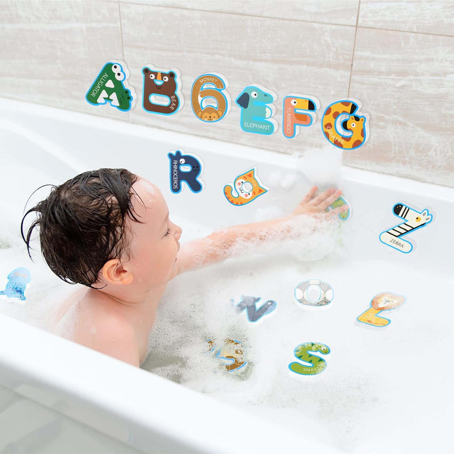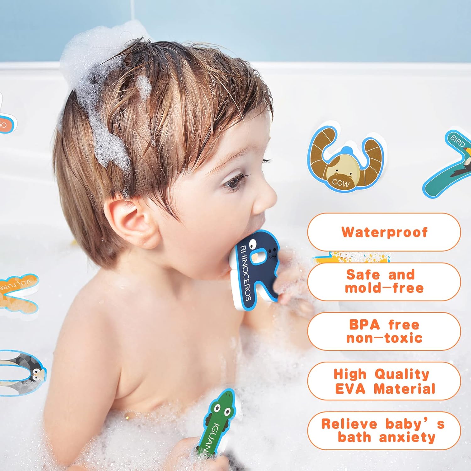 【Gioca e impara】 Questo è un set divertente ed educativo di giochi da bagno con 26 lettere e 10 numeri da bagno. Le lettere in gomma morbida possono galleggiare nell'acqua o attaccarsi al muro. Ogni lettera rappresenta un animale diverso. I bambini possono imparare le lettere e riconoscere gli animali. Puoi usare le reti da pesca per recuperare diverse lettere, cosa che delizierà moltissimo i bambini! 【Materiale Premium】Le 26 lettere da bagno e i 10 giocattoli con numeri sono realizzati in EVA di alta qualità, non tossico e rispettoso dell'ambiente. La custodia per giocattoli è realizzata con doppie cuciture, resistenti e durevoli. Ventosa potente, non facile da cadere dal muro. 【Conservazione dei giocattoli da bagno】 La custodia ha una grande tasca, perfetta per riporre i giocattoli da bagno dei bambini. Può insegnare ai bambini come riporlo mantenendo pulito il bagno. Indossa due potenti ventose contemporaneamente, puoi appendere la borsa a rete ovunque. 【Borsa per rete da pesca】 Le reti da pesca sono di colore arancione brillante e i bambini possono usarle per raccogliere le lettere dalla vasca da bagno come un gioco di pesca, aggiungendo un colore divertente al gioco dell'alfabeto. 【Giocattoli abbinati】 La dimensione della borsa della rete da pesca è: 22 * 12 cm e la dimensione della rete di stoccaggio: 37 * 37 cm. Questi giocattoli sono colorati e di forme diverse, che possono sviluppare la coordinazione occhio-mano e l'equilibrio del corpo dei bambini e sono adatti a bambini dai 2 anni in su.