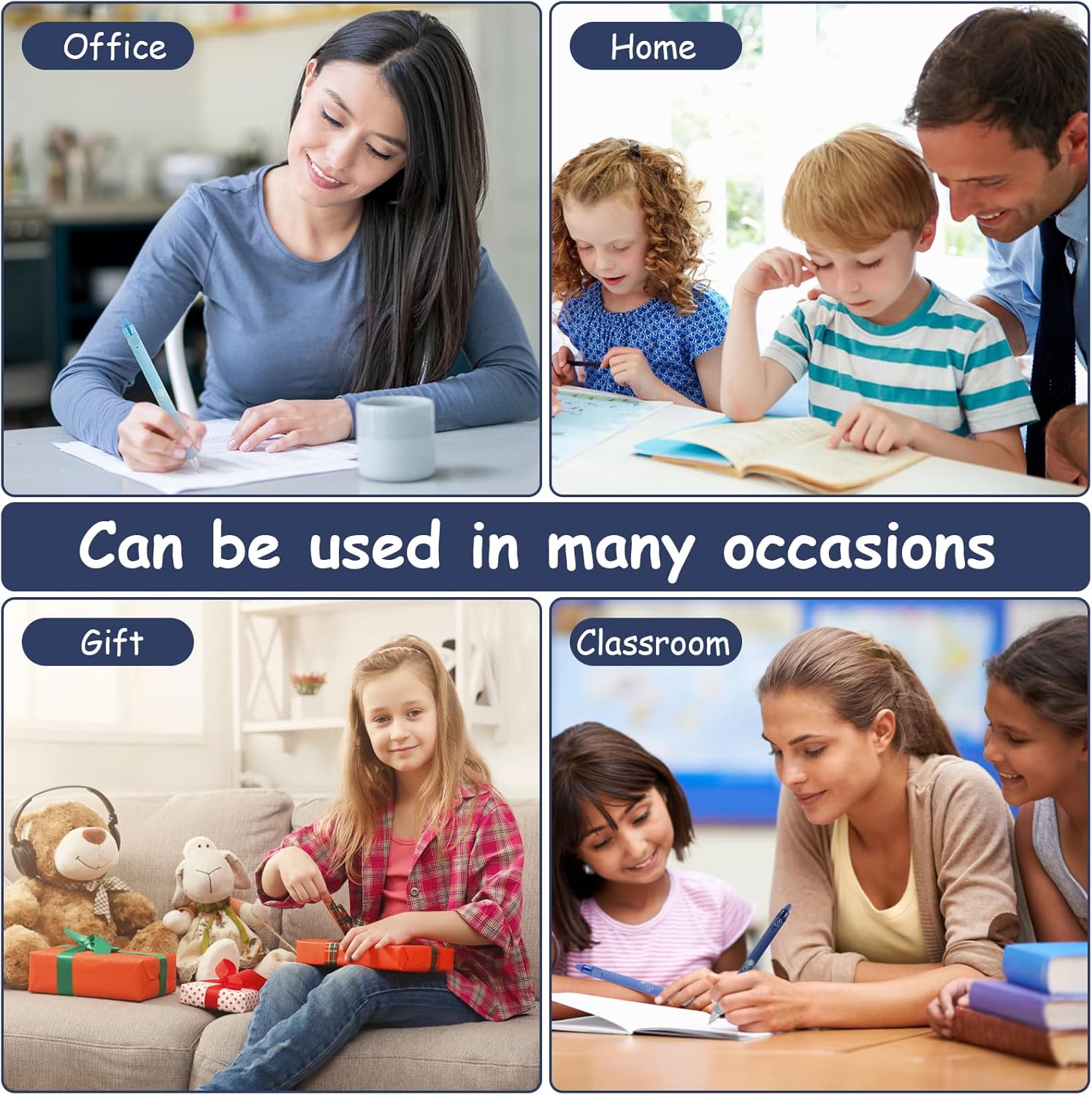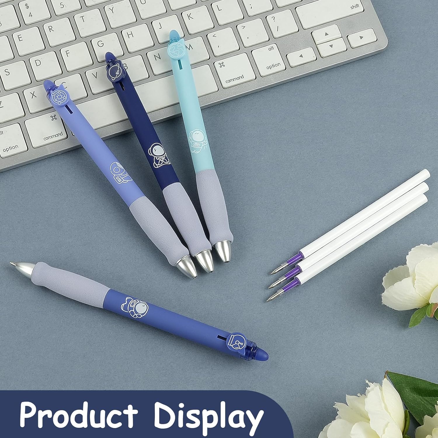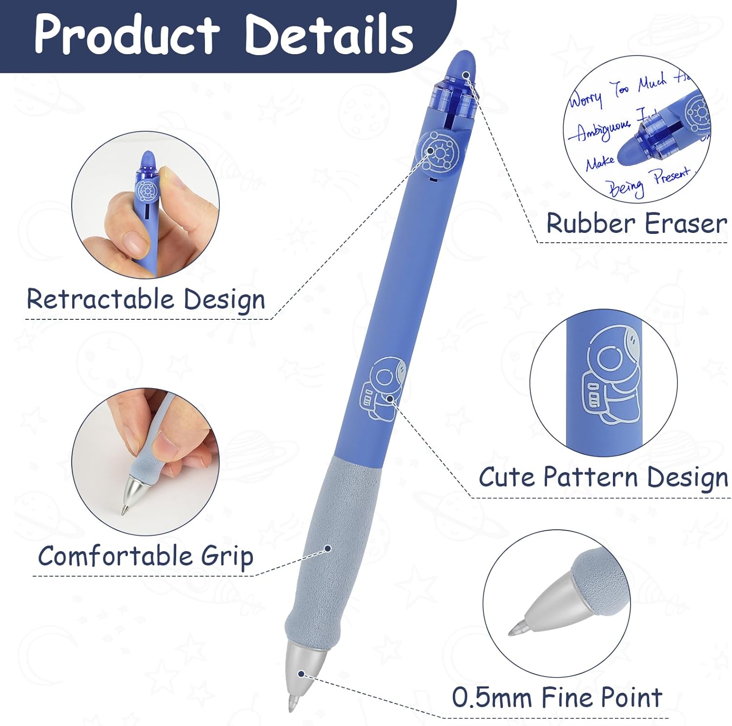 🖊️【Design cancellabile】Ogni penna ha un design a gomma all'estremità. La gomma può essere utilizzata per cancellare gli errori di scrittura. L'inchiostro scomparirà con l'attrito della gomma, senza lasciare residui o danneggiare la carta e potrà essere scritto ripetutamente 🖊️ 【Design a cartoni animati】 Design cliccabile, il corpo della penna ha forme di animali dei cartoni animati come astronauti e pianeti. Ogni penna a tema ha 4 modelli diversi e le forme carine e i colori colorati attirano l'attenzione! 🖊️ 【Materiale di alta qualità】 La custodia della penna cancellabile è realizzata in plastica, punta della penna a sfera da 0,5 mm, scrittura fluida, asciugatura rapida, ricariche facili da sostituire, resistente e non facile da rompere, impugnatura morbida e protezione per mani facili da impugnare. 🖊️【Risparmia tempo】Le nostre penne gel cancellabili sono disponibili in 4 diversi tipi di penne a sfera, progettate per lo stile. Usare queste penne cancellabili fa risparmiare tempo perché non è necessario rifare o riscrivere un'intera sezione solo a causa di un piccolo errore. 🖊️ 【Set di grande valore】 Il set comprende 4 penne cancellabili (ricariche blu), confezionate in una graziosa scatola colorata, perfetta per la scuola, Halloween, il Ringraziamento, Natale, imbottiture per calze, calendari dell'avvento, Pasqua, ecc. Regalo. (Nota: poiché questa penna è cancellabile, non utilizzarla per documenti ufficiali importanti, come contratti, documenti legali, rapporti di esami, ecc.)