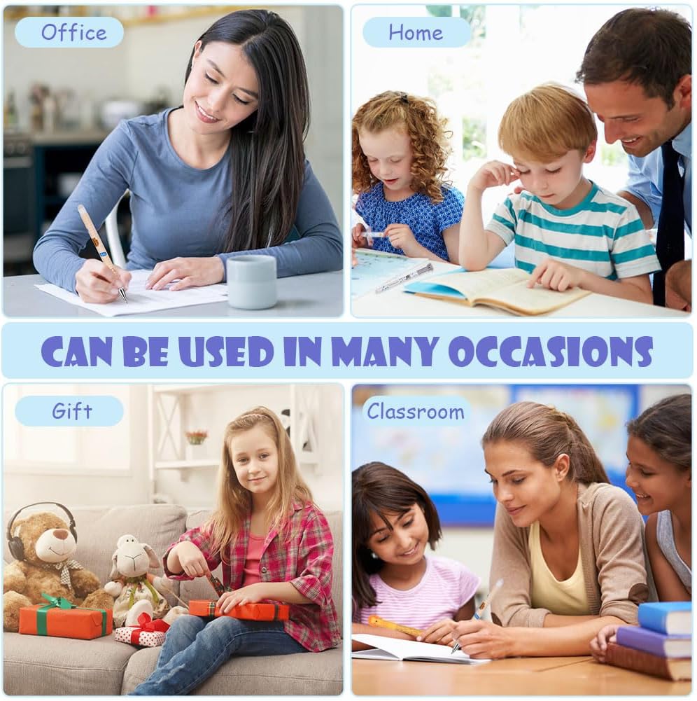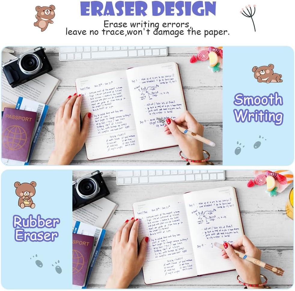 🖊️【Design cancellabile】Ogni penna ha un design a gomma all'estremità. La gomma può essere utilizzata per cancellare gli errori di scrittura. L'inchiostro scomparirà con l'attrito della gomma, senza lasciare residui o danneggiare la carta e potrà essere scritto ripetutamente 🖊️【Design a cartoni animati】Design cliccabile, il corpo della penna ha forme di animali dei cartoni animati come leone, koala, coniglio, pollo, orso, ecc. Ogni penna a tema ha 4 modelli diversi e le forme carine e i colori colorati attirano l'attenzione! 🖊️ 【Materiale di alta qualità】 La custodia della penna cancellabile è realizzata in plastica, punta della penna a sfera da 0,5 mm, scrittura fluida, asciugatura rapida, ricariche facili da sostituire, resistente e non facile da rompere, impugnatura morbida e protezione per mani facili da impugnare. 🖊️【Risparmia tempo】Le nostre penne gel cancellabili sono disponibili in 4 diversi tipi di penne a sfera, progettate per lo stile. Usare queste penne cancellabili fa risparmiare tempo perché non è necessario rifare o riscrivere un'intera sezione solo a causa di un piccolo errore. 🖊️ 【Set di grande valore】 Il set comprende 4 penne cancellabili (ricariche blu), confezionate in una graziosa scatola colorata, perfetta per la scuola, Halloween, il Ringraziamento, Natale, imbottiture per calze, calendari dell'avvento, Pasqua, ecc. Regalo. (Nota: poiché questa penna è cancellabile, non utilizzarla per documenti ufficiali importanti, come contratti, documenti legali, rapporti di esami, ecc.)