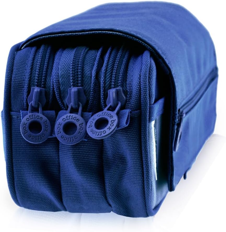 Astuccio portapenne triplo "l'originale" con striscia per il carrello e grande capacità. Grande tasca trasparente all'interno della patta con orari e carta d'identità sul retro. 3 grandi corpi con chiusura a zip e nastro posteriore per attaccarsi al carrello dello zaino o per trasportarlo comodamente. Dimensione ideale per portarlo ovunque. Leggero, compatto e resistente. Rifiuta le imitazioni, solo le custodie Triples Office Box sono "l'originale" la nostra qualità ci garantisce.