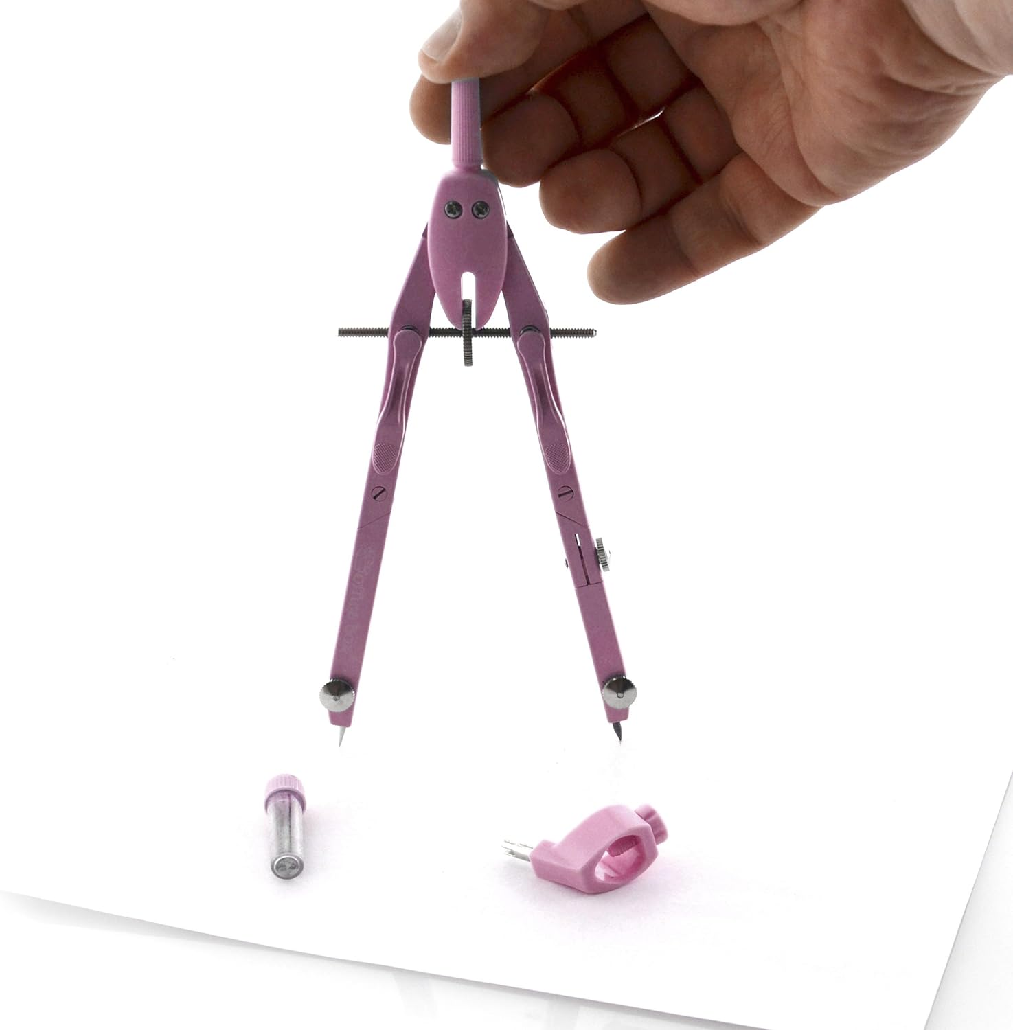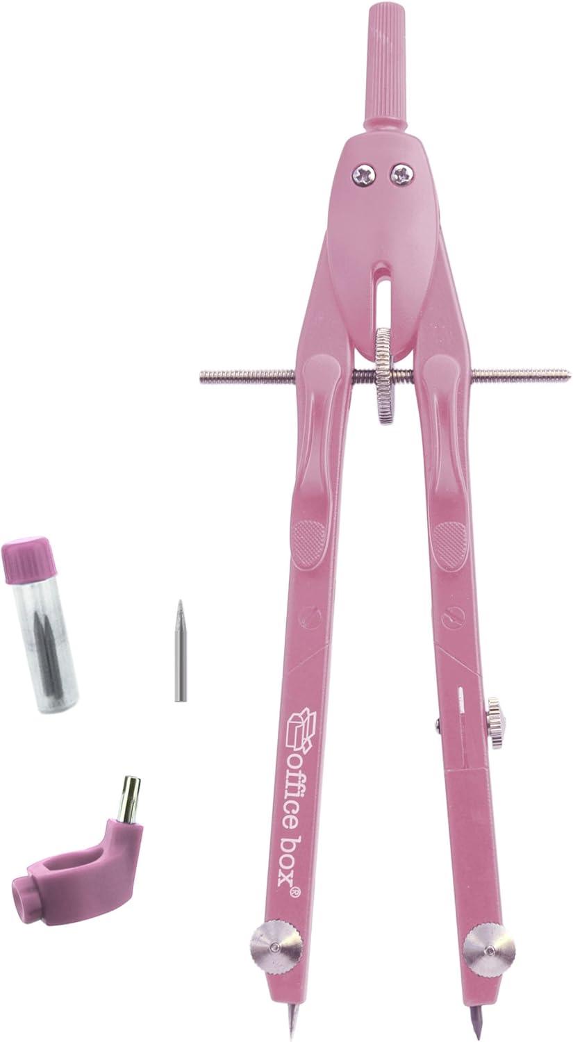 Bussola Baffi di precisione micrometrica con apertura automatica. Due braccia articolate metalliche ad alta resistenza. Presentato in scatola di plastica rigida resistente agli urti, ideale per durare molto più a lungo di un corso. Il set di bussola più completo, massima precisione con adattatore universale in colore abbinato incluso e piccolo barattolo di ricambio per mine con 2 mine incluse e Punzone extra. Colori eleganti e accattivanti combinati con qualità e design per durare tutto il corso.