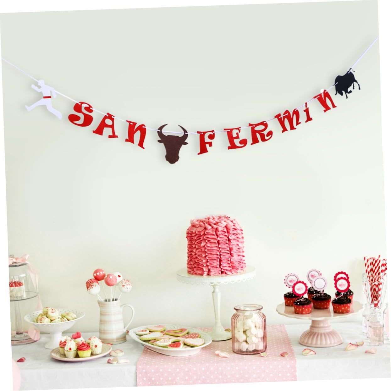 Ornamenti: possono essere appesi a pareti, finestre, rami, porte e altri luoghi, ottimi per la decorazione interna o esterna, tela. Banner a coda di rondine in tela: abbellimento per aggiungere divertimento e colore extra alla festa, ornamenti per feste. Accessori per feste a tema: lettere SAN speciali, esprimi il tuo, decorazioni per feste. Ghirlanda: può davvero aiutarti a creare momenti speciali e indimenticabili come decorazione murale per le feste di Pamplona.