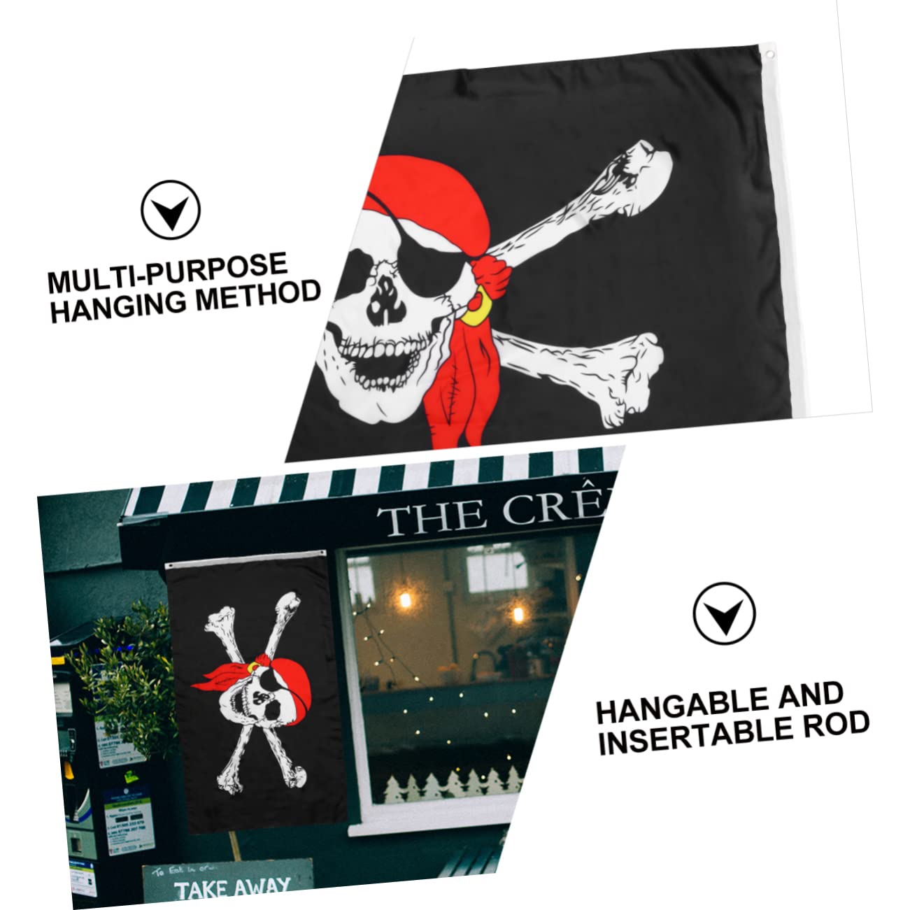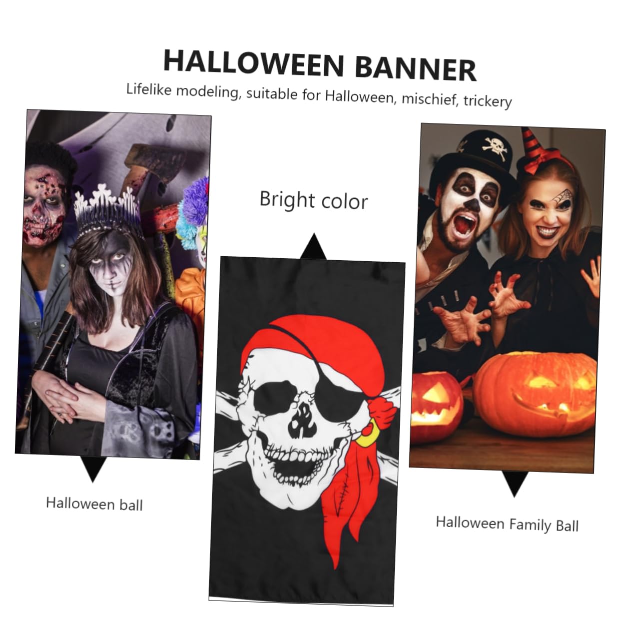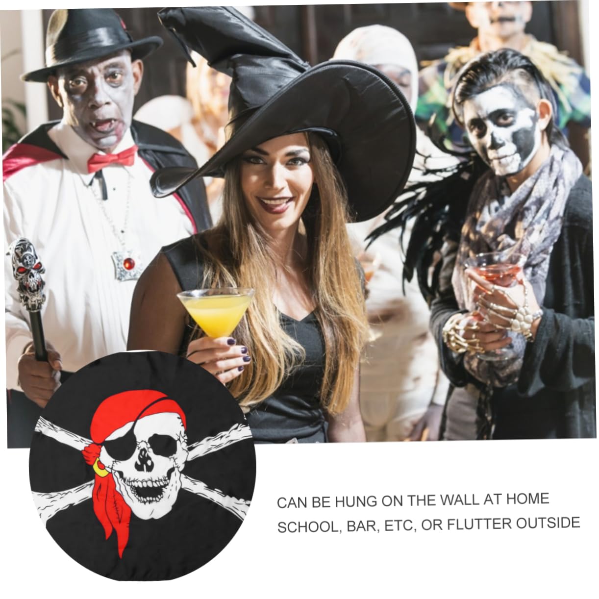 Banner bandiera pirata in poliestere: crea un'atmosfera felice per la festa di Halloween con i tuoi amici e familiari, decorazioni di Halloween. Banner pirata: motivo su entrambi i lati, resistente a qualsiasi condizione atmosferica, bandiera pirata di Halloween. Bandiera del partito pirata - Può essere utilizzata in varie occasioni, come feste di Halloween, feste a tema pirata, feste di compleanno ecc., striscione pirata con ossa di teschio. Decorazione del ballo di fine anno: si abbina bene all'atmosfera di Halloween, al festival felice, piacevole ed emozionante, alla decorazione della festa dei pirati. Cappello da clown - Accessori decorativi di Halloween per la tua casa o una festa di Halloween, cappello.