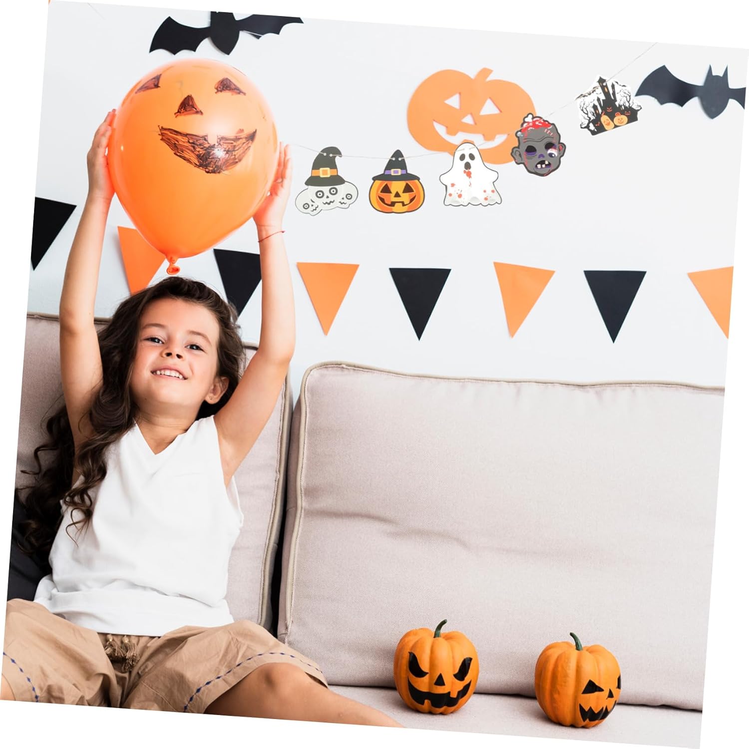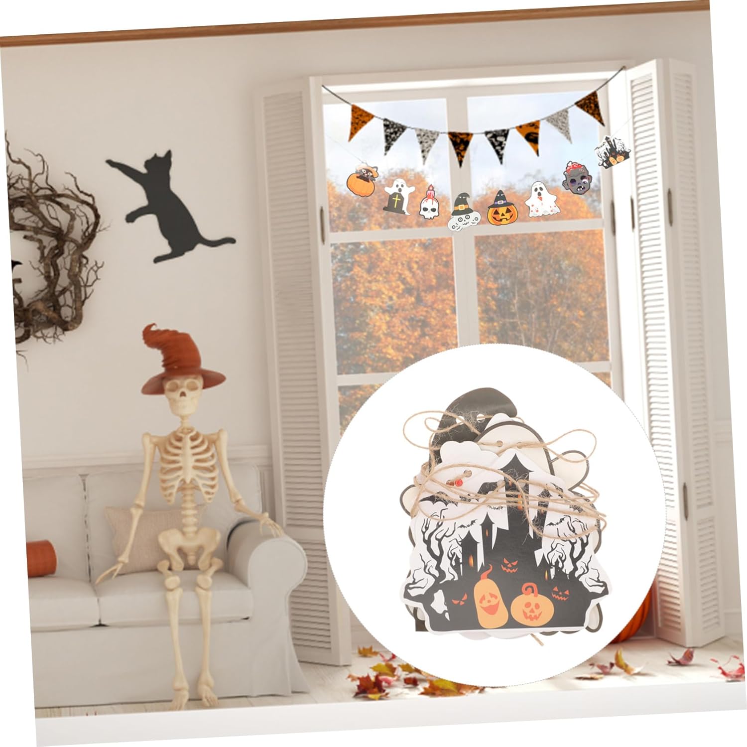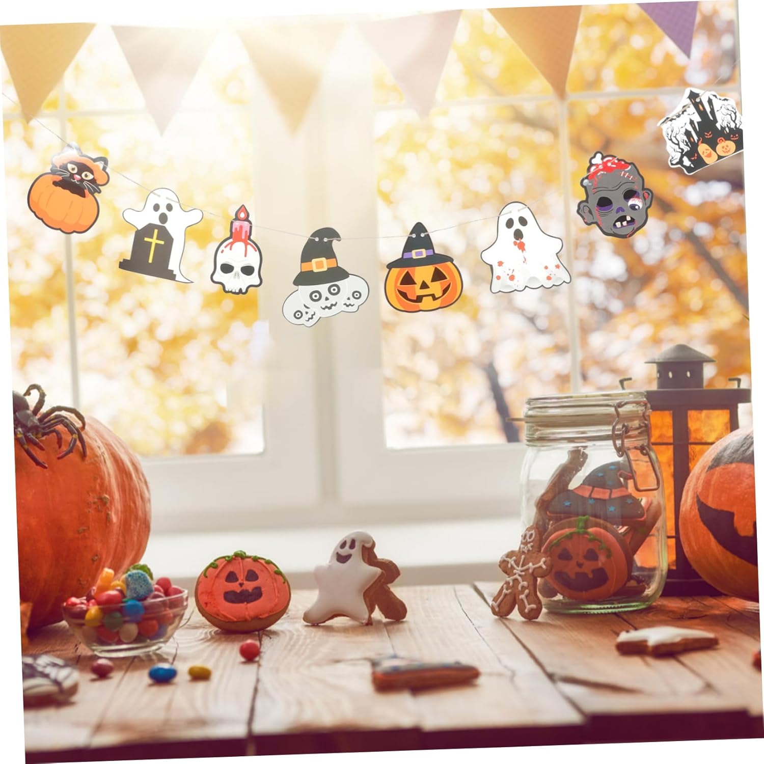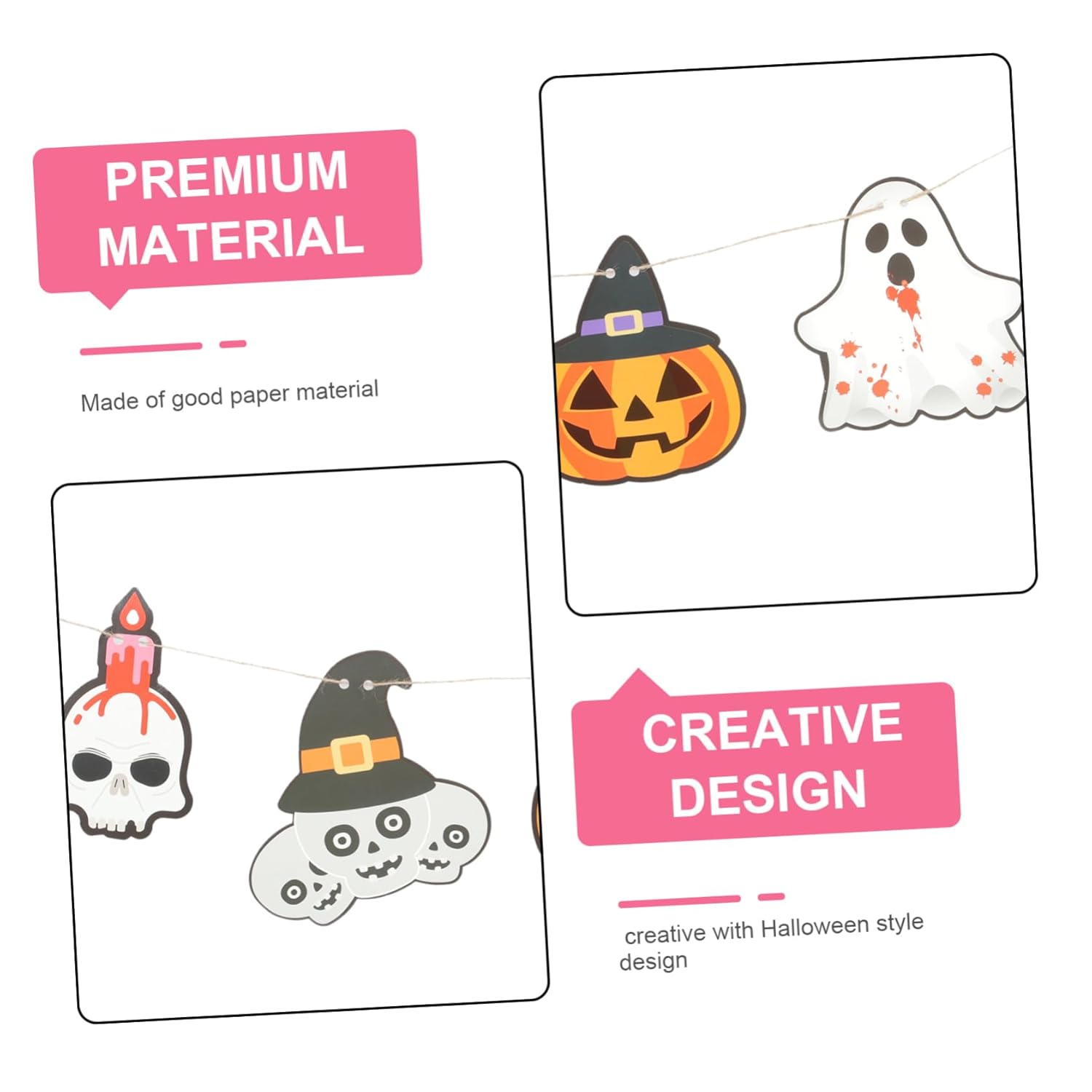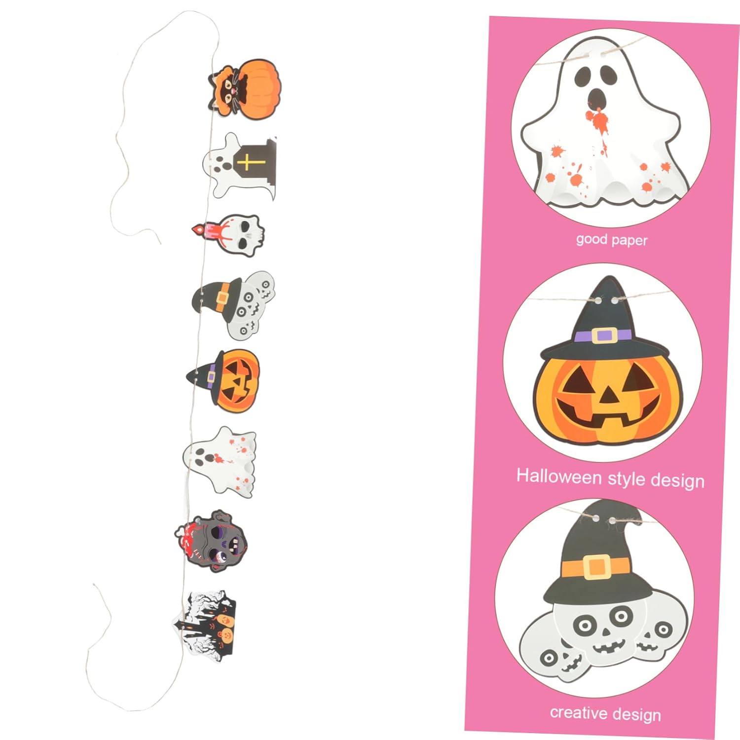 Decorazioni per la casa di Halloween: il design semplice e creativo di Halloween è ottimo come forniture e decorazioni per feste. Cartello Happy Halloween - Puoi entrare nello spirito di Halloween decorando la tua casa con questo striscione e usarlo per decorare il muro, la porta, l'albero, ecc. Decorazione da appendere di Halloween - Decorazione per feste in maschera di Halloween, casa, ingresso, pub, ufficio, centro commerciale, mensola o muro. Ghirlanda di fantasmi di Halloween - 🎃🦇🕷️Adottato con buon materiale cartaceo, lo striscione è sicuro e leggero e non sbiadisce facilmente. Banner del festival - ✅ ✨ ✅ ✨ Lo striscione sospeso può essere attaccato a cortili, porte, finestre, sporgenze, rami, cancelli, ecc. Puoi attaccarlo al muro per creare uno sfondo per la festa di Halloween da utilizzare per scopi fotografici.