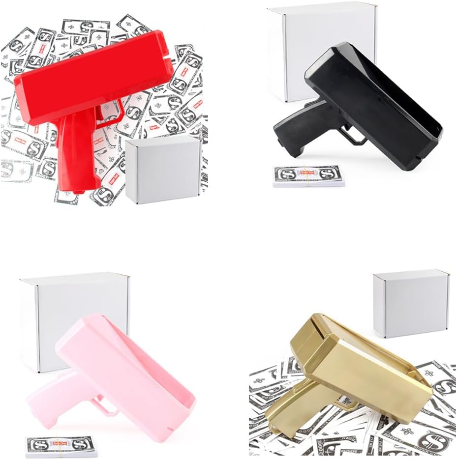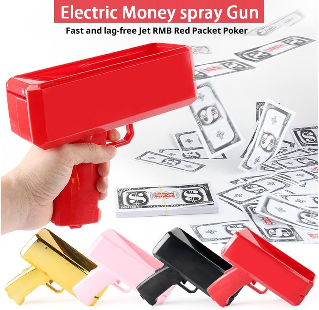 Materiale robusto: questo nuovo e fantastico giocattolo spruzza denaro come una doccia a pioggia. Realizzato in materiale di sicurezza ABS di alta qualità, è bello e divertente Facile da usare: utilizzare un cacciavite per svitare il coperchio, inserire la batteria (non inclusa) nel coperchio, aprire il coperchio superiore e inserire le banconote in modo pulito e uniforme (senza pieghe). Lasciali cadere come una doccia a pioggia e assicurati che le banconote siano distribuite nella giusta direzione. Multiuso: questo fantastico giocattolo per feste è adatto per feste, lauree, addii al nubilato, discoteche, matrimoni, Natale, feste di compleanno, riunioni di famiglia, feste aziendali e altro ancora. Regalo: questo fantastico regalo per ragazzi e ragazze è adatto per feste, compleanni, riunioni e festività. È disponibile su entrambi i lati senza loghi e può essere progettato da solo. Adatto per più oggetti: allineare gli oggetti inseriti nella money gun in banconote o simili e poi coprirli